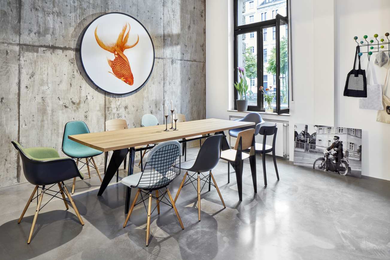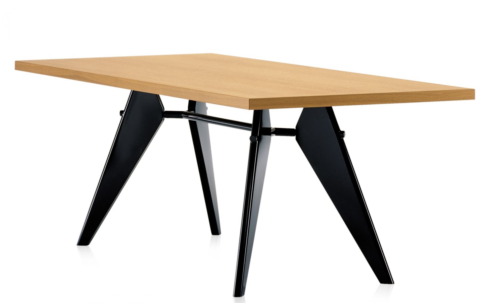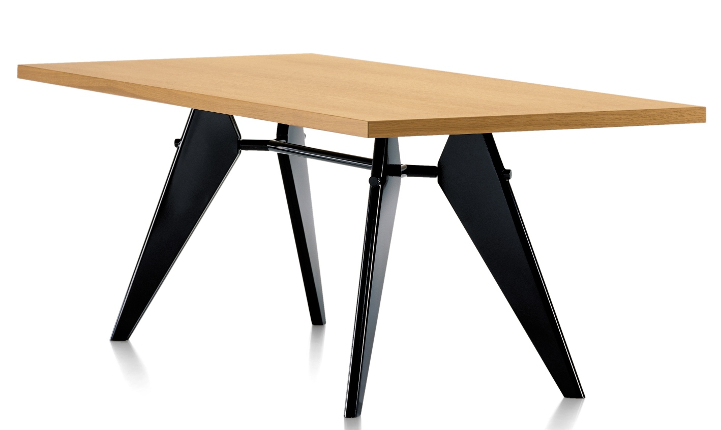 Der bekannte Designer und Konstrukteur Jean Prouvé entwarf eine Vielzahl formschöner Möbel, darunter auch den EM Table von Vitra. Er entstand für das Projekt „Maison Tropical“ und zeichnet sich bis ins kleinste Detail durch seine Konstruktion aus. Diese folgt einer ästhetischen Notwendigkeit: Eine Traverse verbindet die Tischbeine und illustriert so den Kräfteverlauf und die statischen Zusammenhänge, die man sonst nur von Ingenieurbauten kennt.
