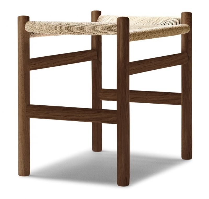 Der Tisch ist in verschiedenen Walnuss- oder Eichenholz Varianten erhältlich und misst 80 cm im Durchmesser und 30 cm in der Höhe.