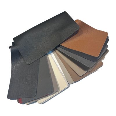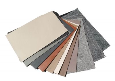 Ledermusterkarte: Verschiedene Lederfarben und -texturen, inklusive Naturleder, zur Auswahl für Möbel und Polster.