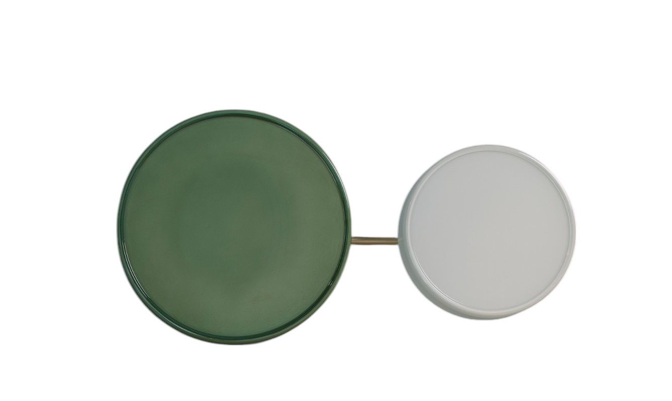 Nanimarquina Teppich Alga Rug: Beige, unregelmäßig geformter Wollteppich mit grünlichen Akzenten auf hellem Untergrund.