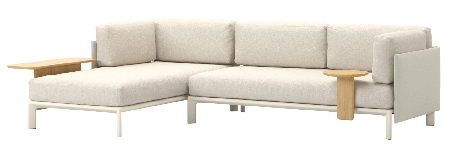 Beiges Anagram Chaise Longue Sofa von Vitra mit Holzablagen, modernes Ecksofa für Wohnzimmer.