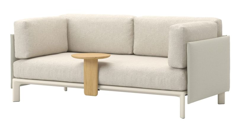 Anagram 2-Sitzer Sofa von Vitra mit beigem Stoffbezug und integriertem Holztisch. Modernes Design.