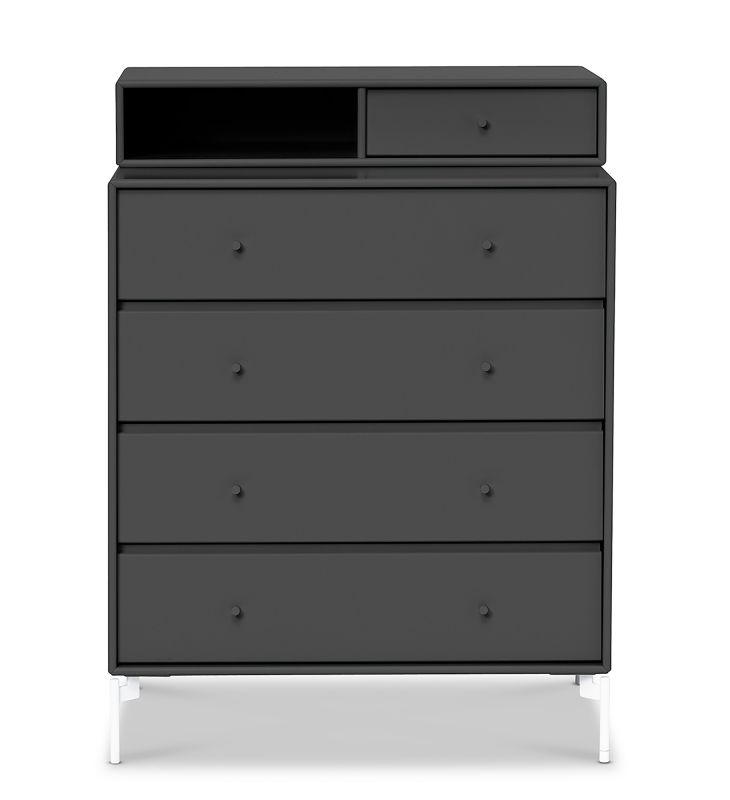 Anthrazitfarbene Kommode mit fünf Schubladen und Ablagefach, KEEP Serie, modernes Möbeldesign.