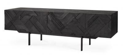 Schwarzes Graphic TV Möbel aus Teakholz von Ethnicraft mit geometrischem Muster und Metallbeinen.