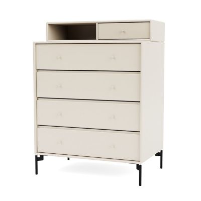 Cremefarbene Kommode mit vier Schubladen und schwarzem Gestell, KEEP Kommode für Schlafzimmer und Wohnraum.