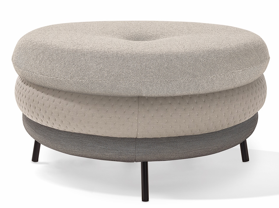 Rund und präsent: Der Design-Pouf-Lounge-Hocker Fat Tom von Designer Alexander Seifried erweitert die Pouf-Familie aus dem Hause Richard Lampert. Und er kann was, der Fat Tom! Er hat drei Polsterlagen und vier Stahlrohrfüße. In der Version mit vier Lagen liegt Fat Tom einfach auf dem Boden auf. Den extravaganten Design-Lounge-Hocker kann man sich nach Belieben zusammenstellen, vier verschiedene Stoffarten und sechs verschiedene Farben und Strukturen lassen viele Möglichkeiten offen. Die aufeinander abgestimmten Stoffe und die verschiedenen Schattierungen eines Farbtons machen Fat Tom zu einem spannenden Hingucker im Objektbereich und mit einem Durchmesser von 80 cm und einer Höhe von 45 cm zu einem bequemen Wohn-Partner.