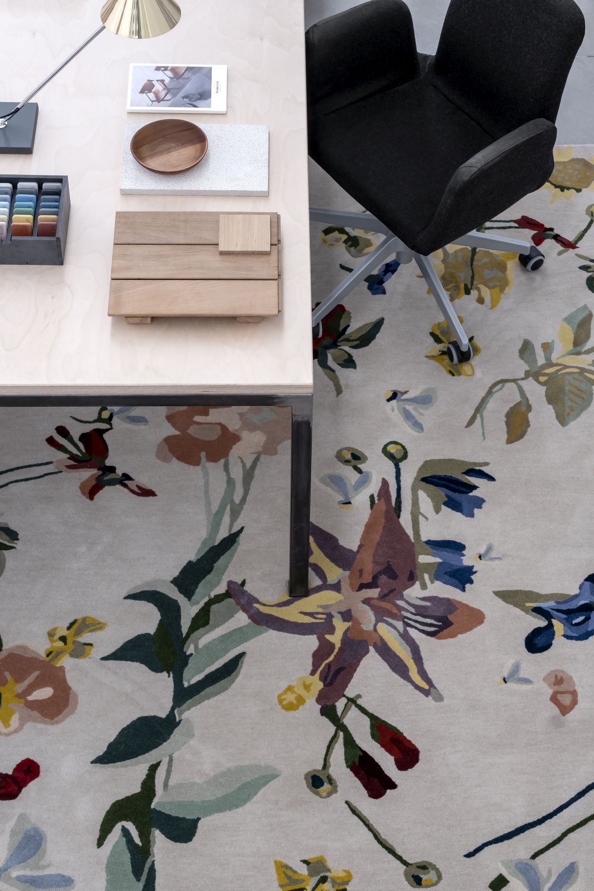 Der Künstler Santi Moix entwarf mit der Flora Kollektion eine blumige und naturalistische Teppich-Serie für Nanimarquina. Seine Interpretation nahm die Parallelen zwischen Leben und Tod in biomorphen Pflanzen in den Vordergrund. Das Modell Promenade ist eine Übung in der Neuinterpretation der auf den Teppich übertragenen floralen Arbeiten des Künstlers.