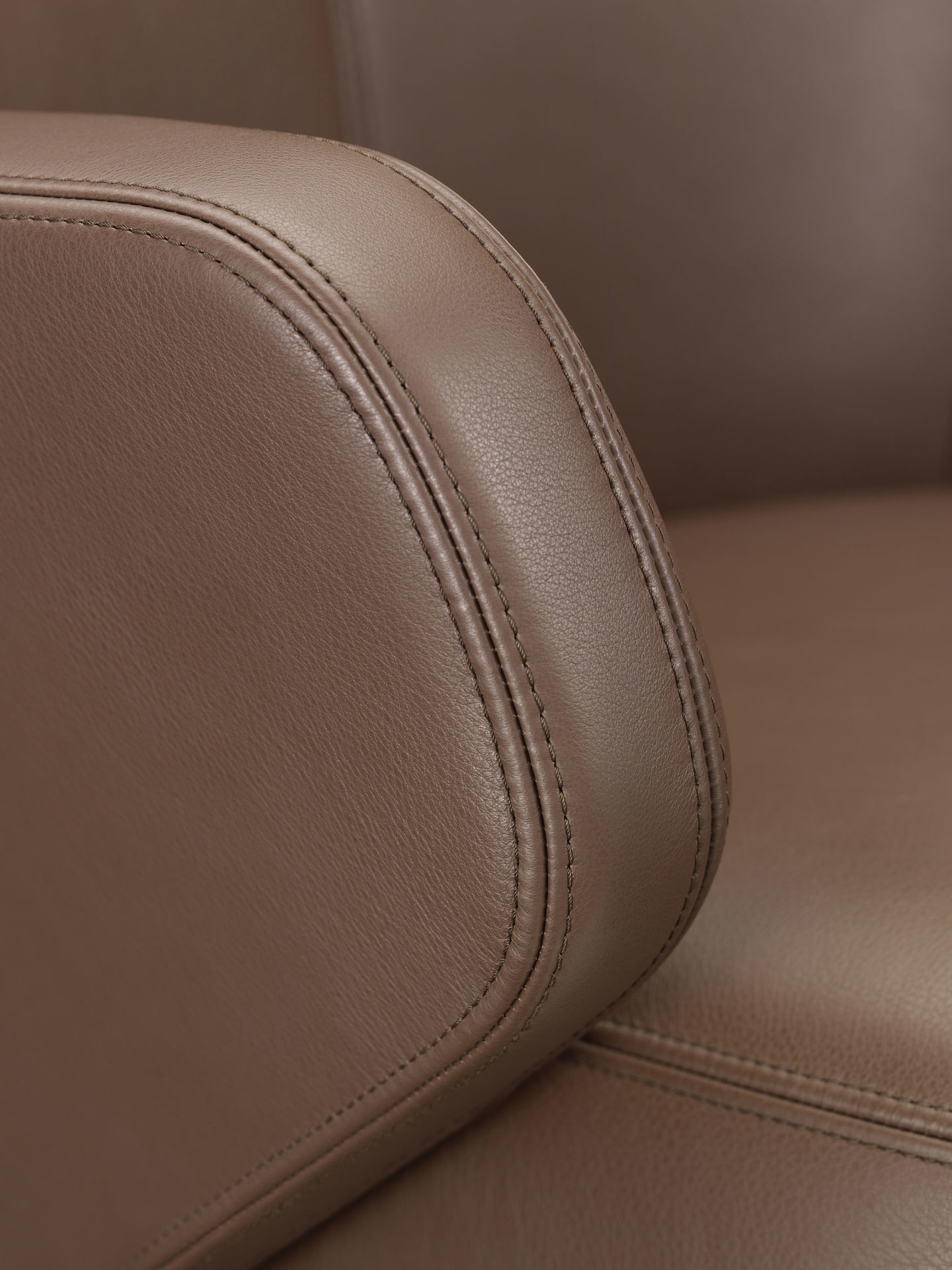 Der Konferenzstuhl ist ein Schalensitz mit integrierten Armlehnen. Die Rückenschale besteht aus Kunststoff und Sitz- und Rückenpolster aus Polyurethanschaum. Der Bezug ist aus Leder. Das 4-Stern-Untergestell ist aus poliertem Aluminium-Druckguss. Der Stuhl verfügt über eine FlowMotion-Konferenzmechanik mit einer individuellen Anpassung der Rückenlehnen-Gegenkraft und fixierter Sitzhöhe sowie einer Komfort-Tiefenfederung.