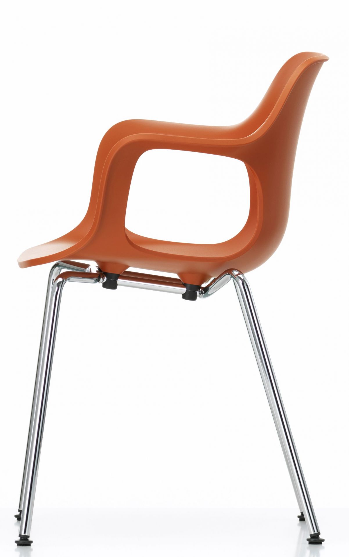 Mit seiner einteiligen, organisch wirkenden Schale mit den geschwungenen Armlehnen hat Jasper Morrison einen Stuhl entworfen, der komplett eigenständig in seiner Gestalt ist, sich aber doch deutlich als Teil der Hal Stuhlfamilie zu erkennen gibt.
