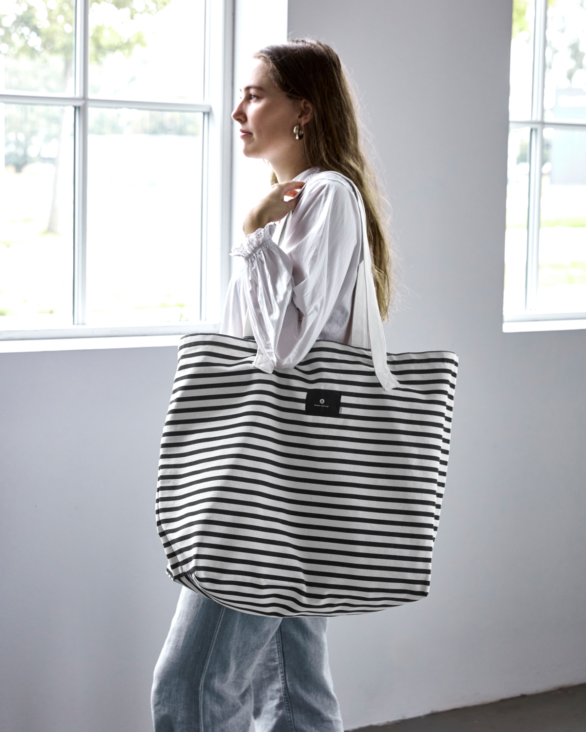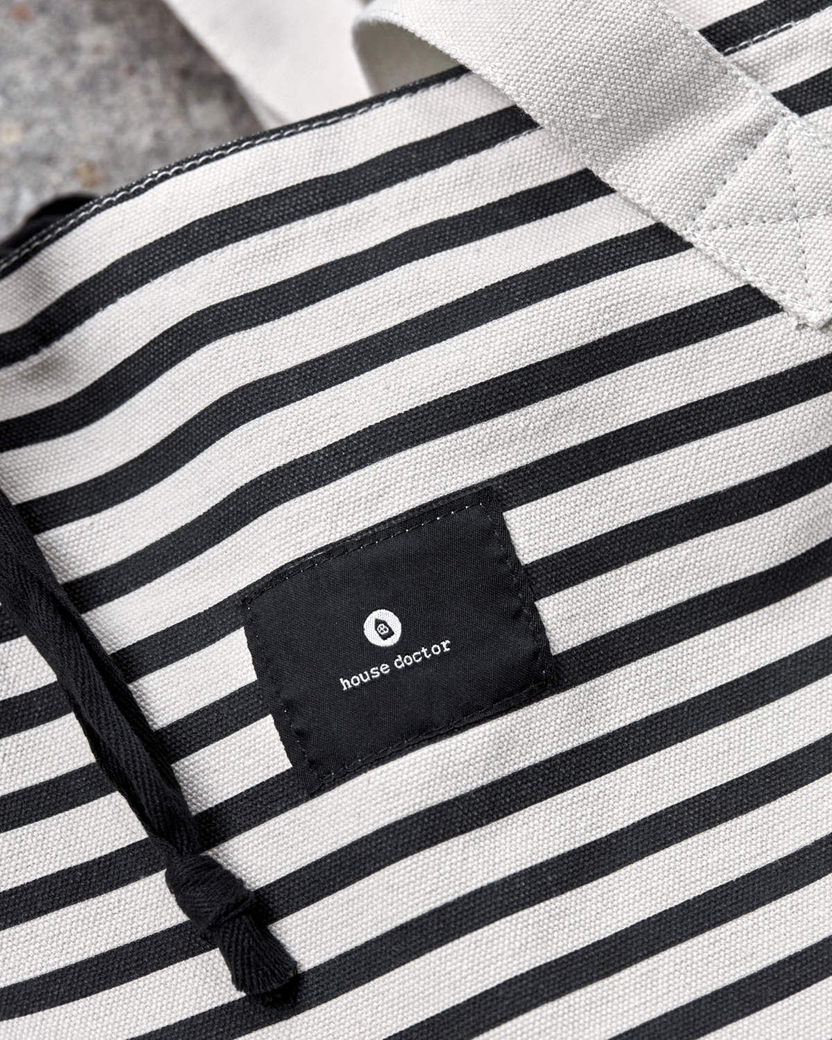 Die HDCanva Tasche von House Doctor vereint skandinavische Schlichtheit mit praktischer Funktionalität. In einem zeitlosen Streifendesign in Schwarz und Off-White gehalten, überzeugt sie durch ihre schlichte Eleganz und vielseitige Einsetzbarkeit. Ob als Wäschetasche, Aufbewahrung für Spielzeug, saisonale Kleidung oder als stylishes Ordnungssystem – die robuste Tasche ist ein echtes Allroundtalent im modernen Zuhause.