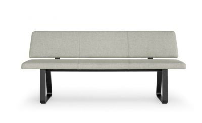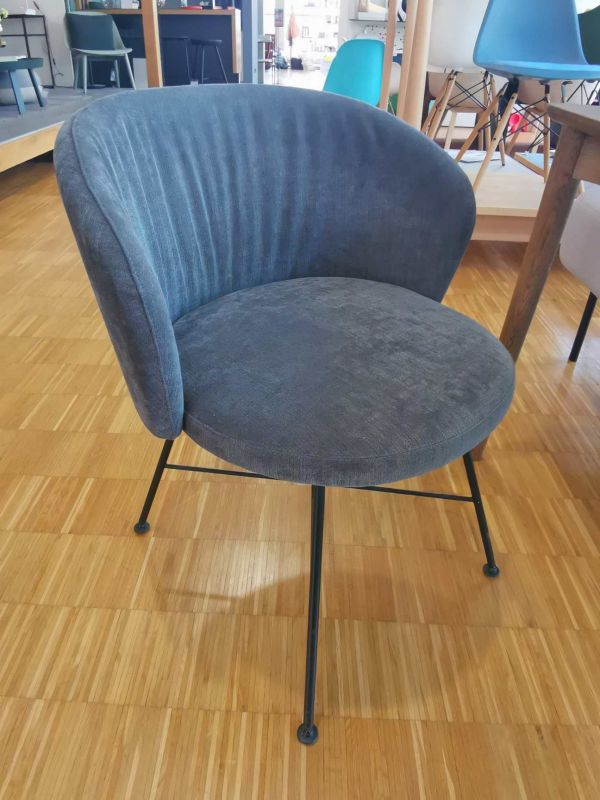B042 Biala Stuhl von Girsberger: Grauer Polsterstuhl mit schwarzen Metallbeinen, Ausstellungsstück.