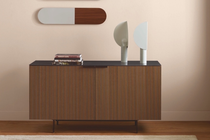 Mit seinen vertikalen Holzrippen und der schwebenden Optik bringt das Selvans Sideboard Struktur in den Raum. Die hochwertige Verarbeitung und das harmonische Zusammenspiel aus Holz und mattem Finish machen es zu einem Designobjekt mit Substanz – formvollendet, französisch, Ligne Roset.