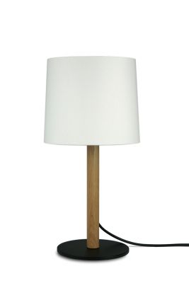 Luca Stand Tischleuchte von Maigrau: Weiße Lampe mit geräuchertem Eichenholz-Gestell für Nachttisch oder Schreibtisch.