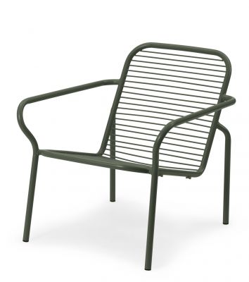 Normann Copenhagen Vig Lounge Chair Sessel für den Außenbereich, grünes Metallgestell mit horizontalen Streben.