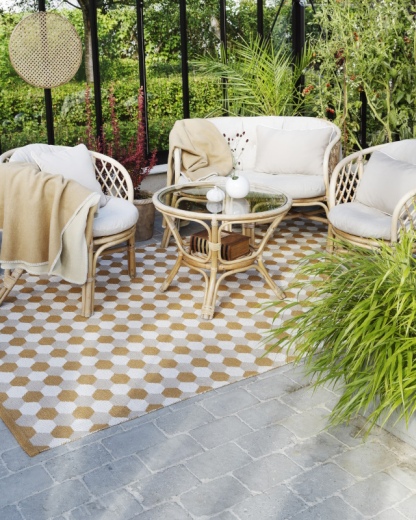 - UV-Beständigkeit – das verwendete Material weist eine sehr gute Sonnen- und UV-Beständigkeit auf. Nach der internationalen Norm ISO 105-A05 liegen die Teppiche von Pappelina bei 4 von 5 möglichen Punkten.