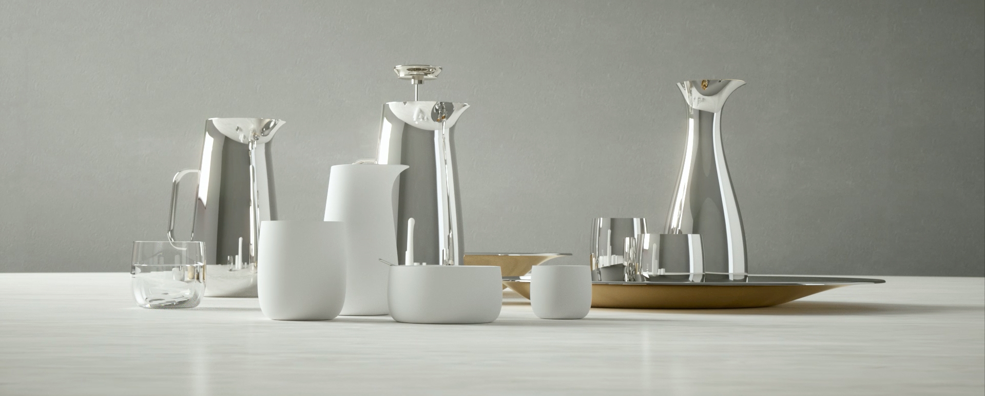Stelton steht für ansprechende und funktionale Designs, die immer mit der Zeit gehen und gleichzeitig zeitlos schön sind. Wie zum Beispiel die hier abgebildete Amphora Kollektion.