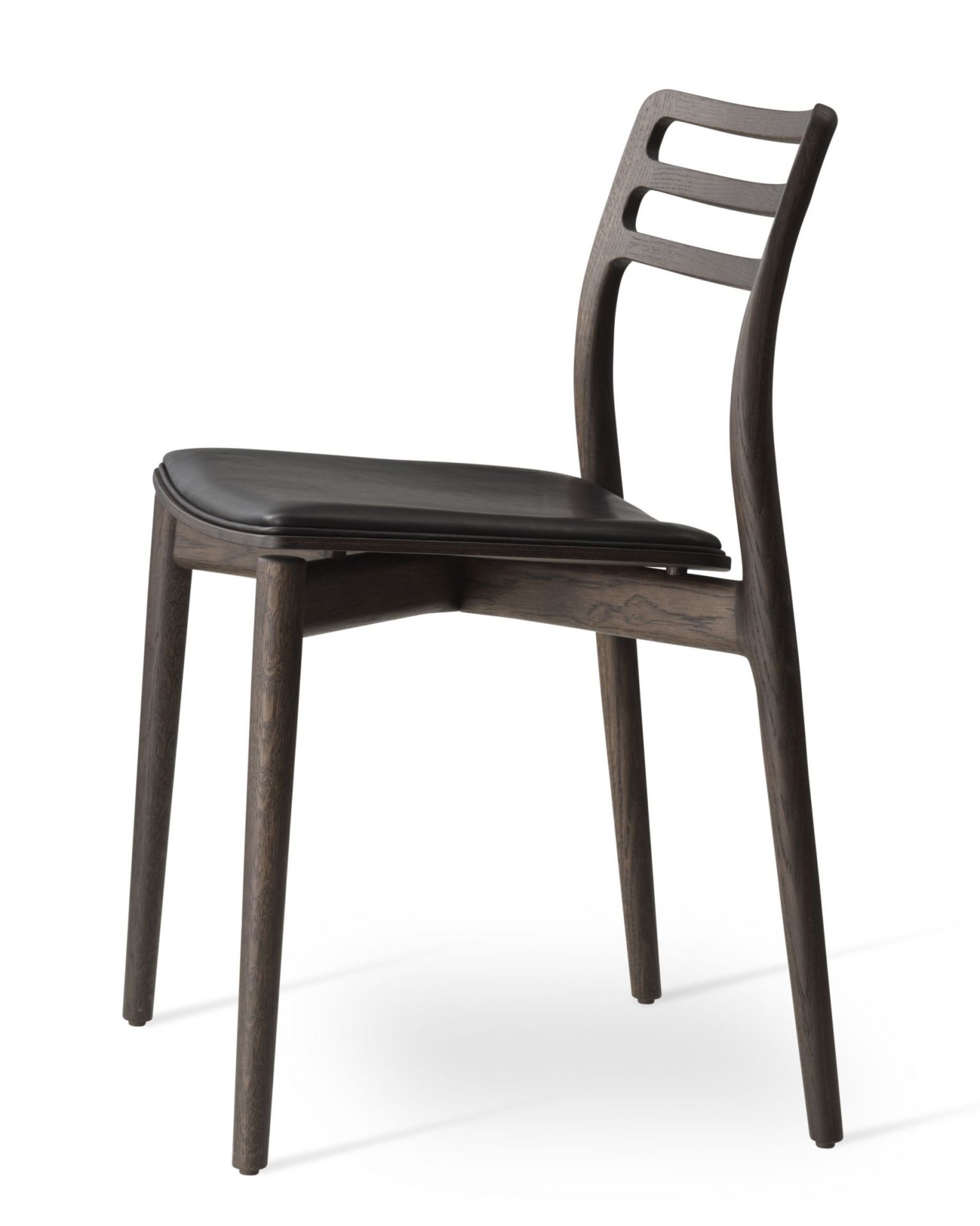 Moderner Esstisch aus dunklem Holz mit schwarzen Stühlen und Designer-Hängeleuchte für stilvolles Esszimmer.