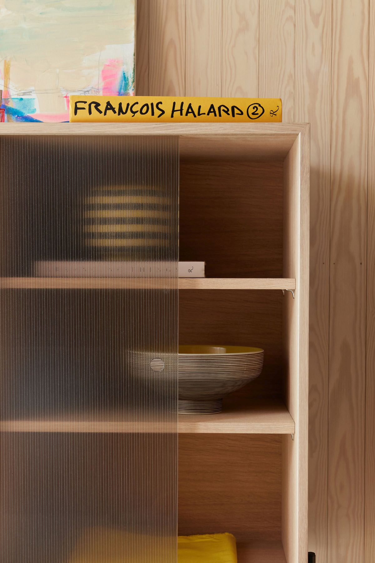 Beim Hifive Schrank sorgen das zarte Stahlfußgestell und der schlank gehaltene Eichenholzkorpus für die nötige Stabilität und Standfestigkeit, ohne dabei zu dick aufzutragen. Die geriffelte, getönte Glasfront bietet ein haptisches Highlight und lässt nur erahnen, was sich hinter ihr befindet. On top können Sie Ihre liebsten Wohnaccessoires, Bilder und vieles mehr präsentieren.