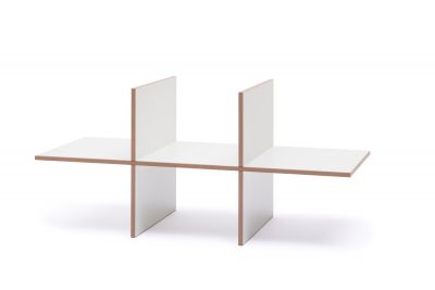 Vielseitiger kann ein Regalsystem kaum sein als der Hochstapler von Tojo. Anders als der Name vermuten lässt, können Sie damit nicht nur in die Höhe, sondern auch in die Breite bauen. Die markant ausgefransten Seiten der Module erzeugen zusätzlich einen besonderen Baukasten-Charme.