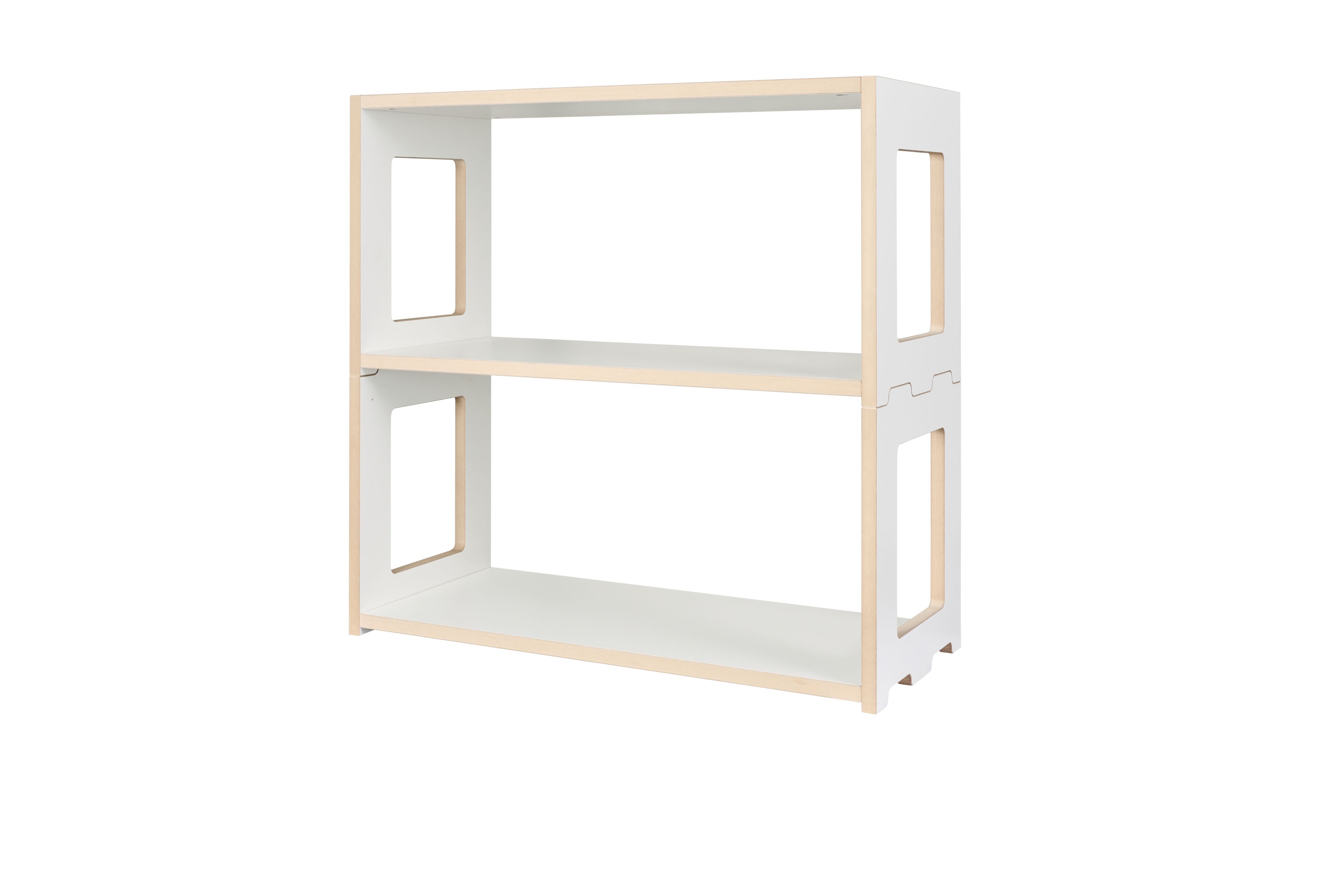 Der Hochstaplerregal Anbaumodul von Tojo besteht aus weiß beschichtetem MDF. Es ist 76 cm breit, 32 cm tief und 35,3 cm hoch. Die Innenmaße betragen 72 cm in der Breite, 32 cm in der Tiefe und 35,2 cm in der Höhe.