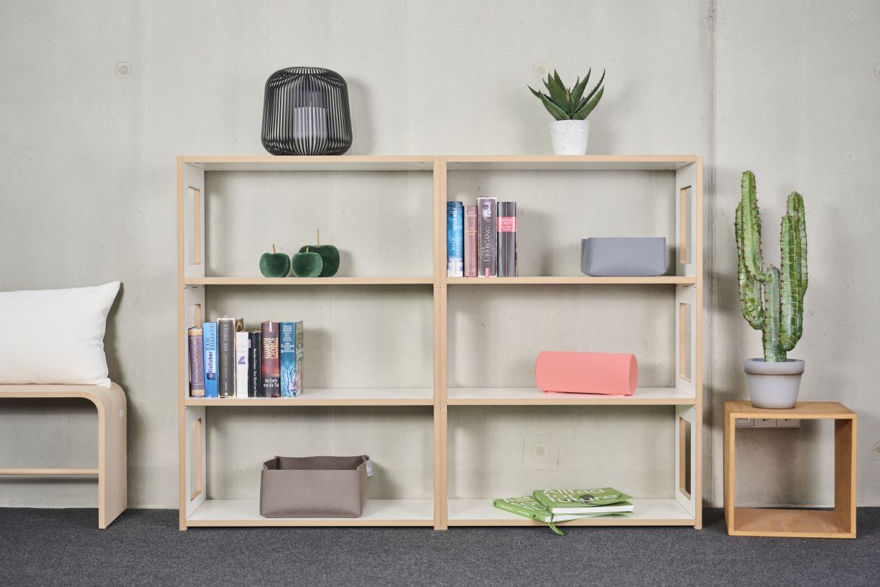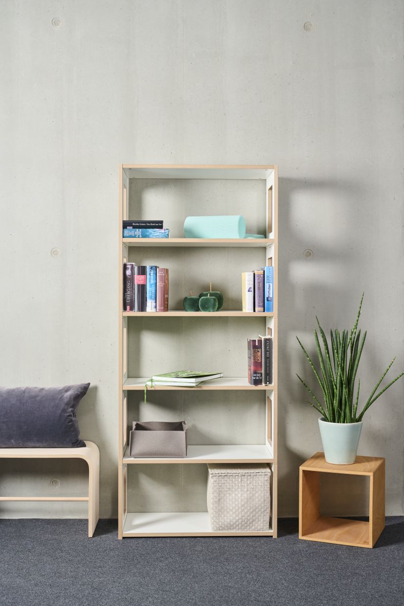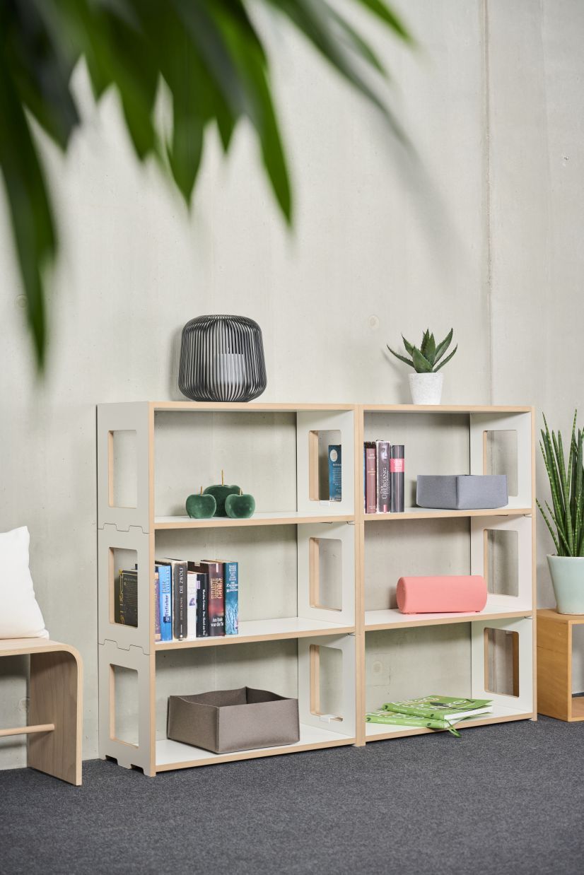 Hochstapeln erwünscht: Hochstaplerregal Anbaumodul Blick von Tojo