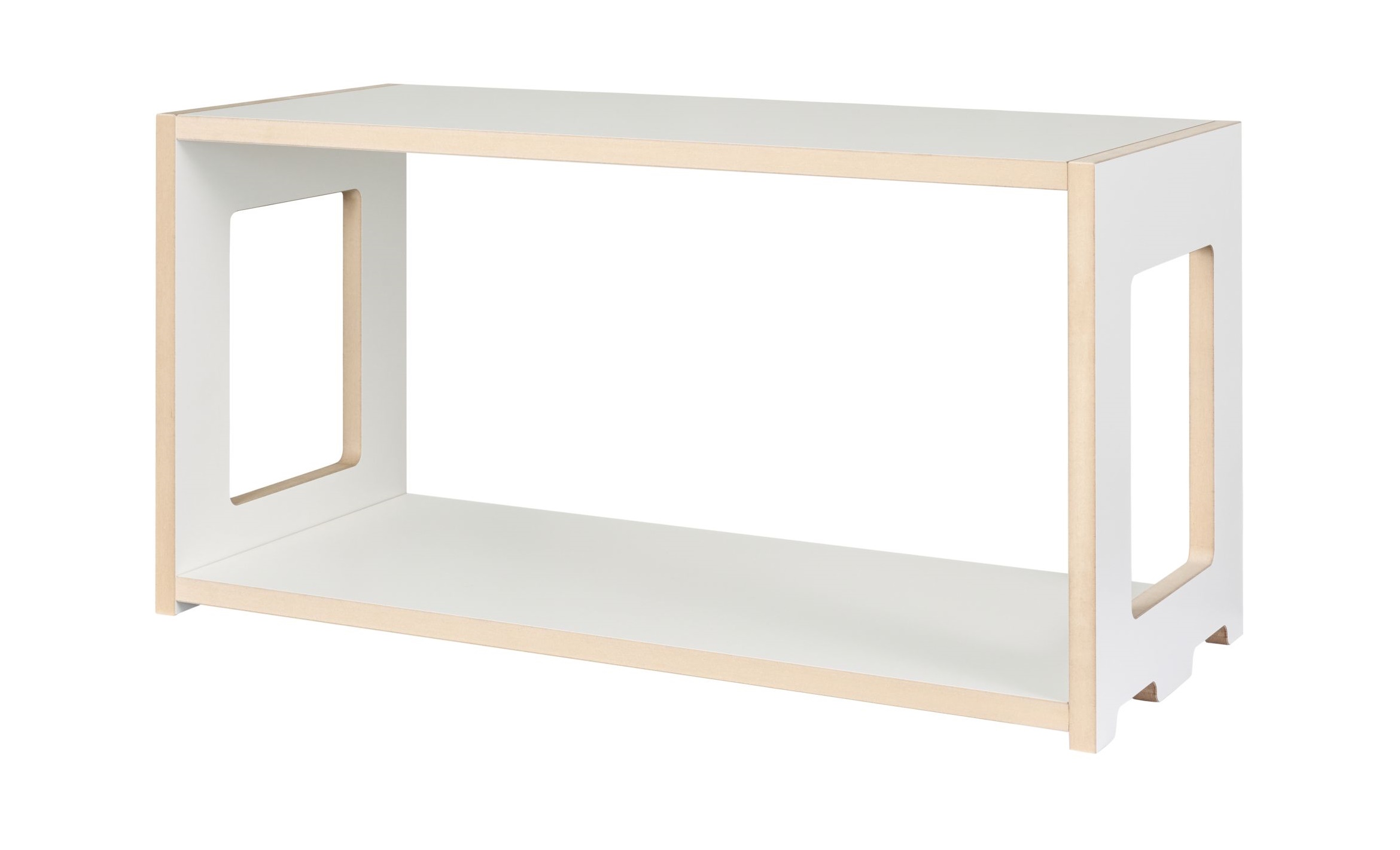 Der Hochstaplerregal Grundmodul von Tojo besteht aus weiß beschichtetem MDF. Es ist 76 cm breit, 32 cm tief und 38,3 cm hoch. Die Innenmaße betragen 72 cm in der Breite, 32 cm in der Tiefe und 33 cm in der Höhe.