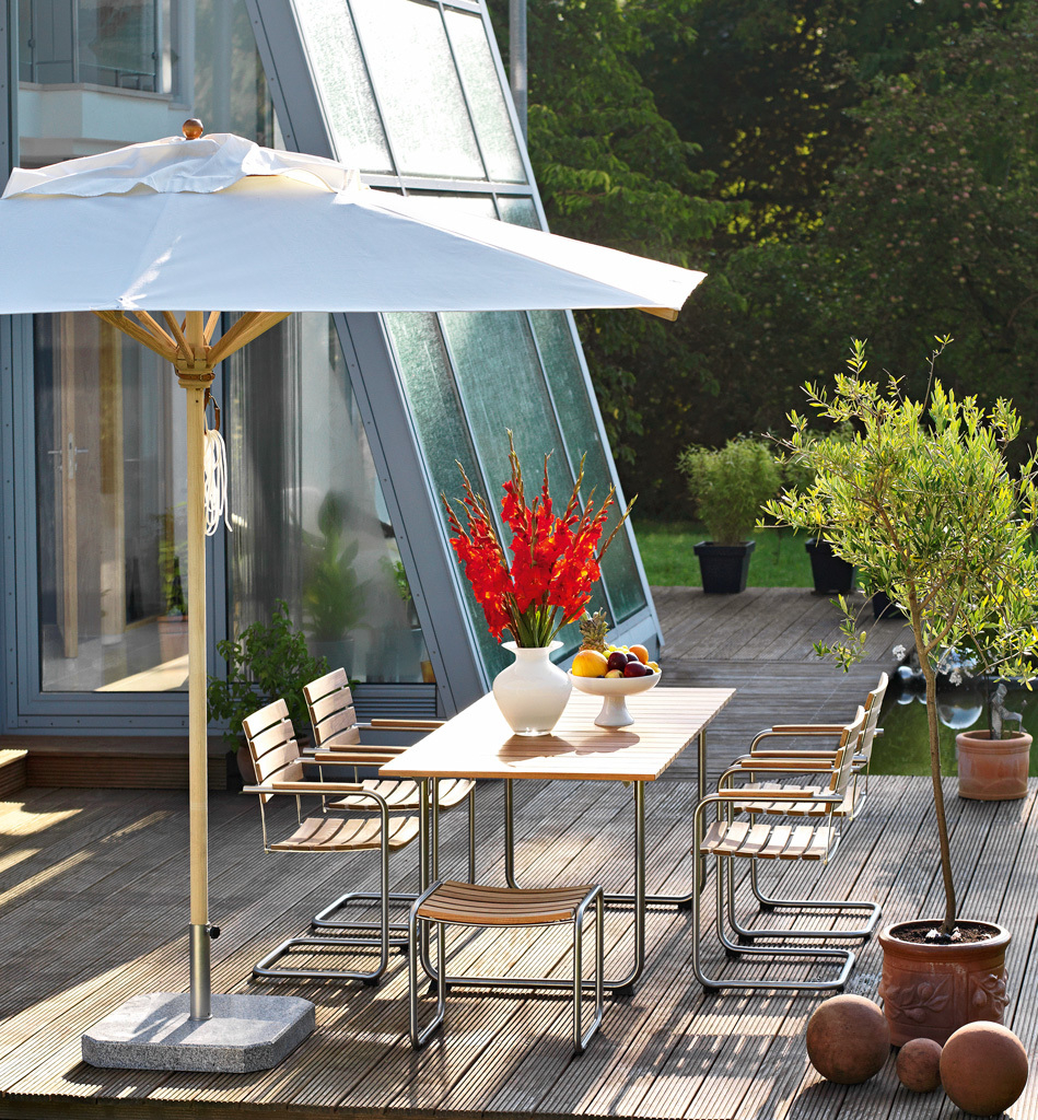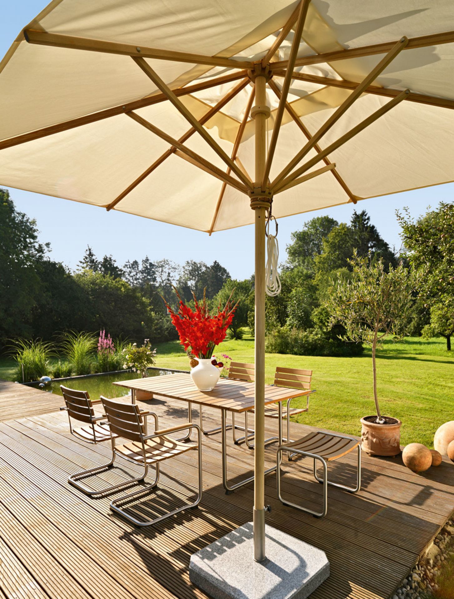 Fester Stand – mit der Bodenplatte sorgen Sie für einen festen und sicheren Stand Ihres Weishäupl Sonnenschirms. Wie auch die Schirme selbst, wird das notwendige Zubehör in Deutschland, genauer gesagt in den Weishäupl Werkstätten in Stephanskirchen in Oberbayern gefertigt.