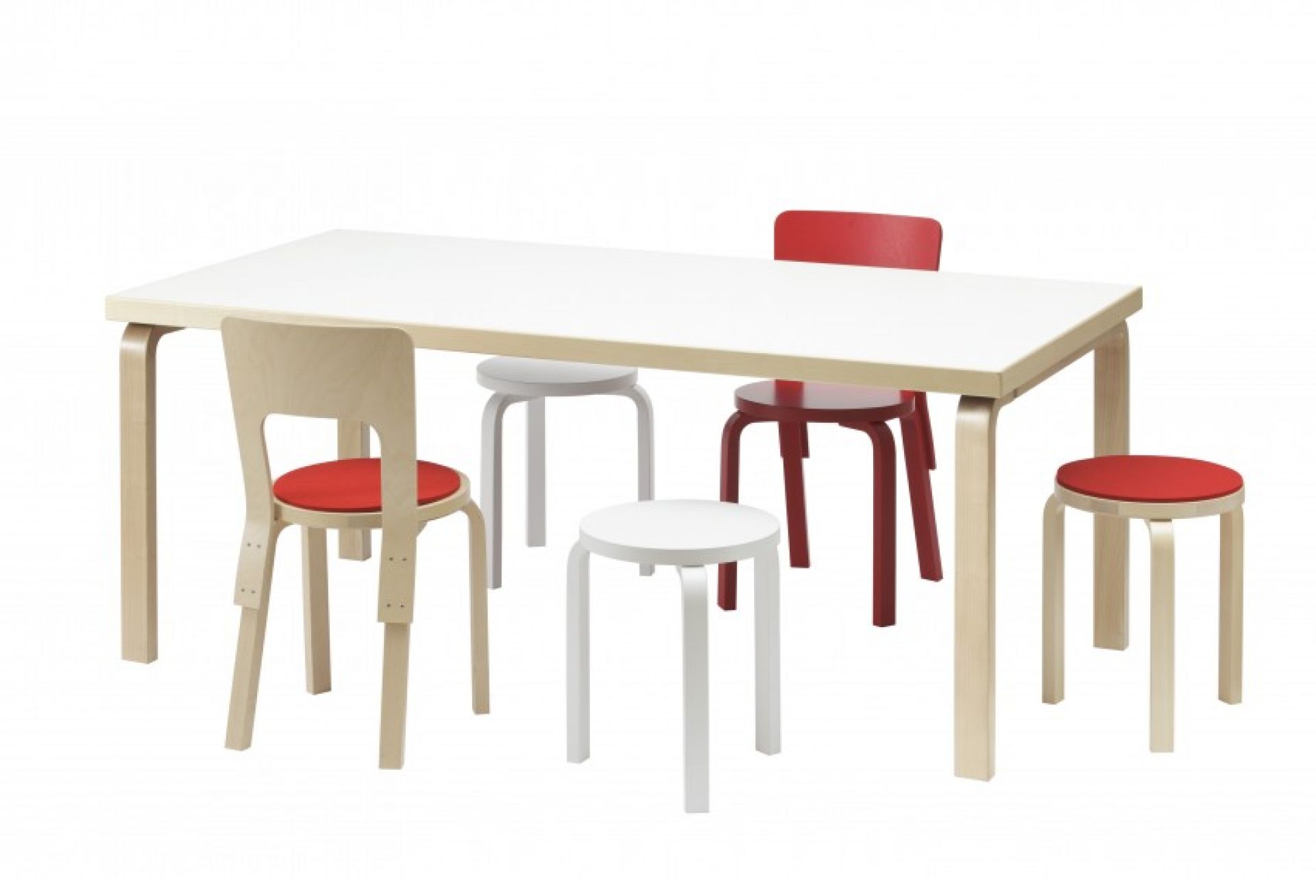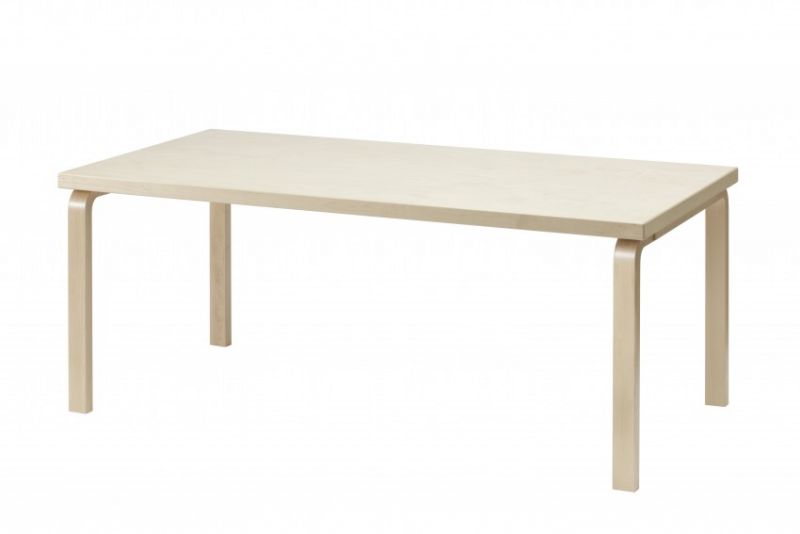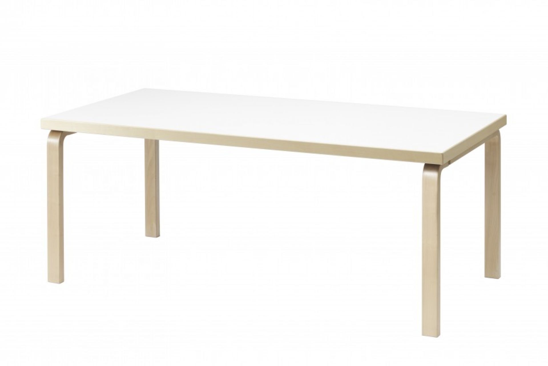Den Design-Tisch 83 vom finnischen Label Artek gibt es in verschiedenen Größen und Oberflächen. Der Tisch ist 72 cm hoch, 182 cm breit und 92 cm tief und besteht aus Birkenholz. Die Tischplattenoberflächen sind als Birke, Linoleum oder Laminat erhältlich.