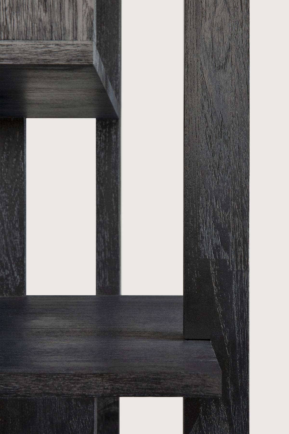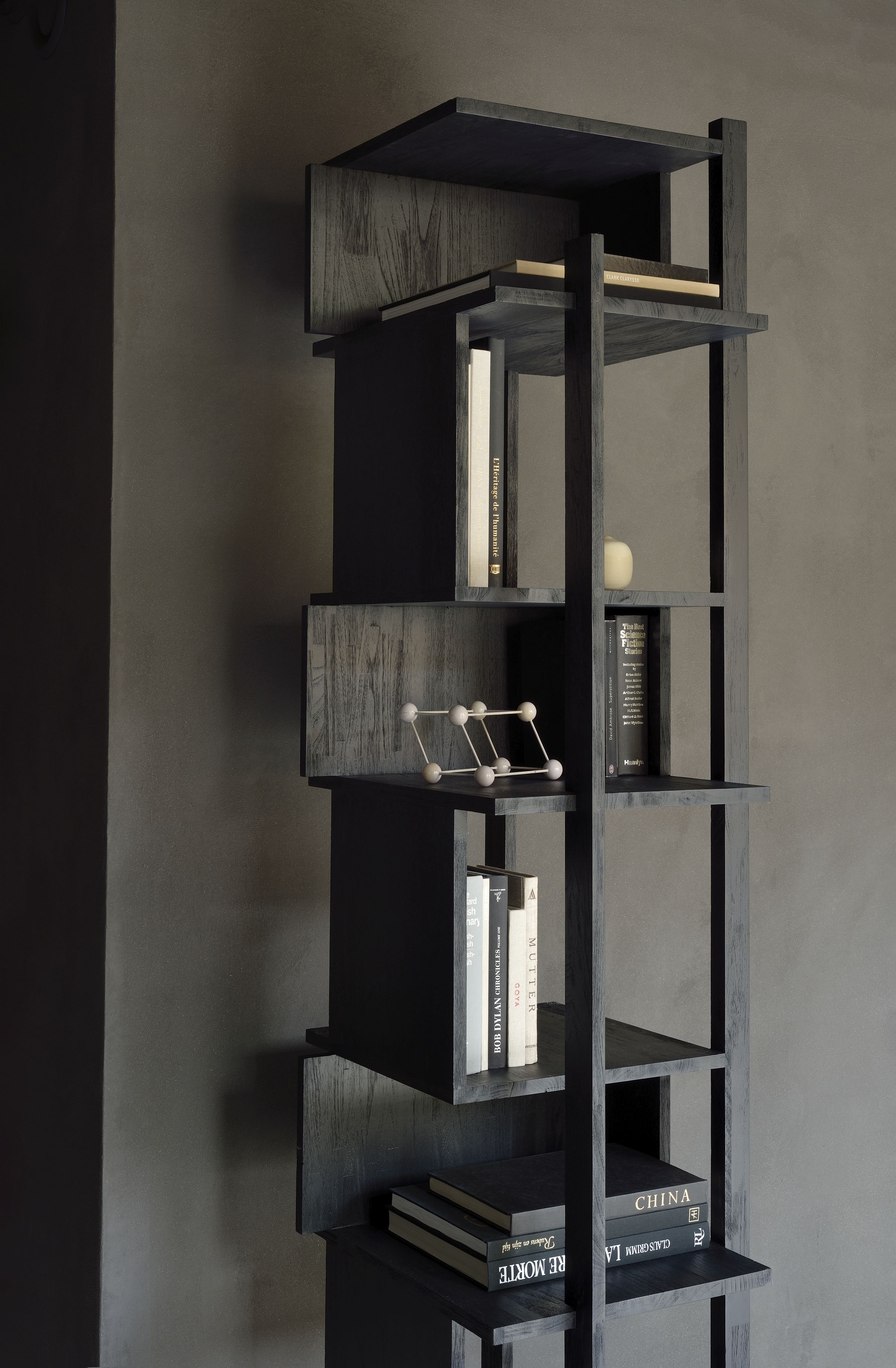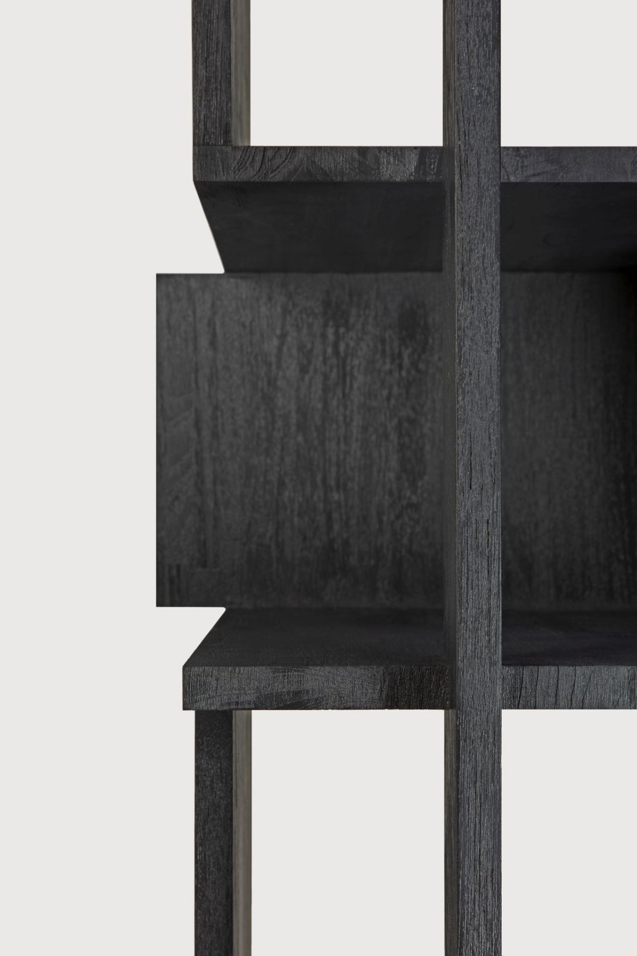Holz zählt zu den Kernmaterialien der Ethnicraft Gruppe, die sich für den verantwortungsbewussten Umgang mit dem Rohstoff einsetzt. Die hochwertigen Holzmöbel sind dazu gemacht Generationen zu überdauern und dabei nicht nur funktional, sondern auch optisch der Zeit zu trotzen. So auch das Abstract Hochregal, gefertigt aus schwarz lackiertem und FSC-zertifiziertem Teakholz.