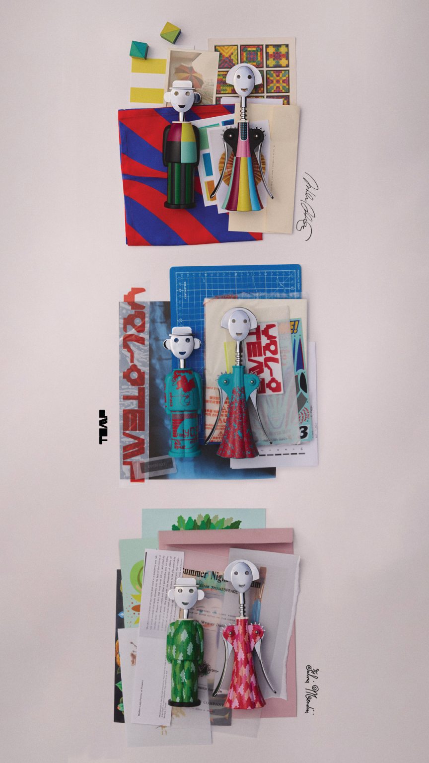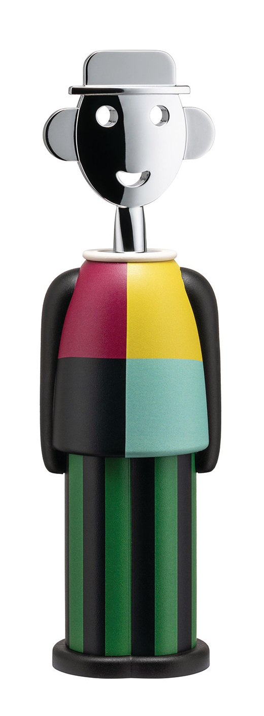 Erleben Sie, wie Design und Funktion verschmelzen! Der Alessandro M. Parade Korkenzieher von Alessi ist weit mehr als nur ein Korkenzieher – er ist ein Kunstwerk, das Ihrem Tisch Leben und Farbe verleiht. Dieser charmante Korkenzieher wurde vom renommierten Designer Alessandro Mendini entworfen und ist eine humorvolle Selbstkarikatur des Künstlers, sowie der kleine Bruder des Anna G. Parade Korkenziehers. Mit seinem charakteristischen Hut und Lächeln macht er jede Flasche Wein zu einem stilvollen Erlebnis.
