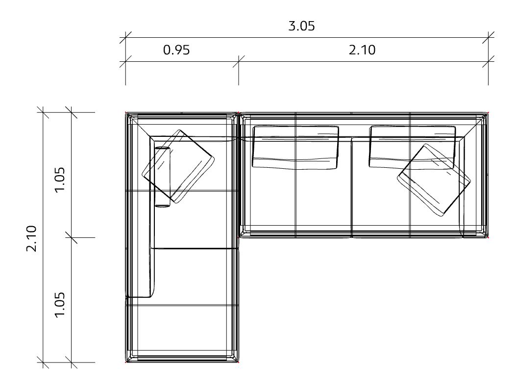 Maße in cm: B 305 x T 210 x H 70