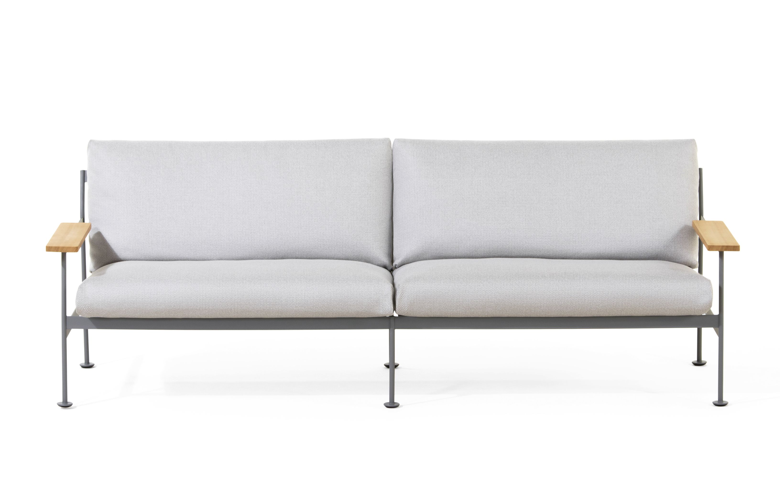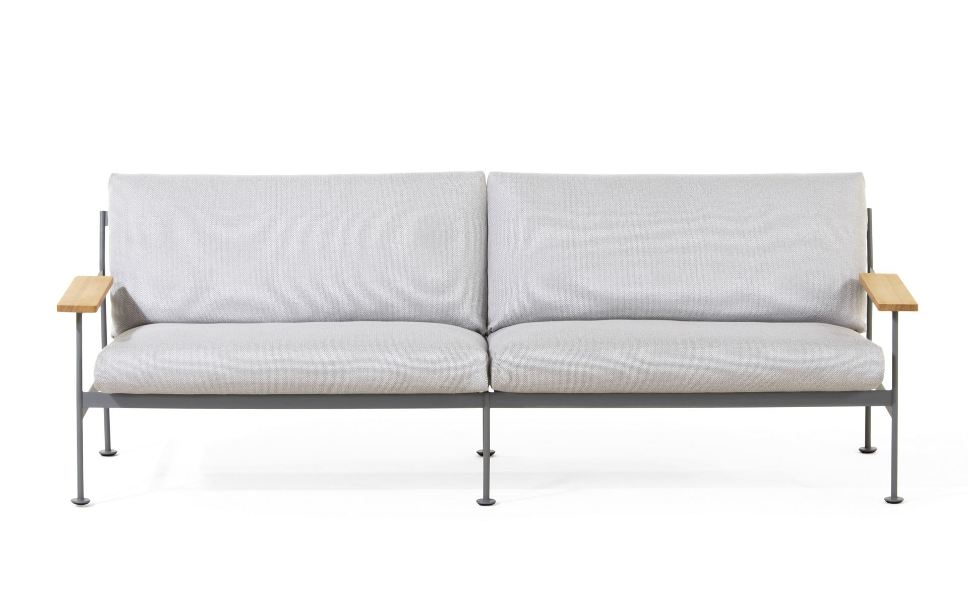 Das Jugo Outdoor-Sofa ist 213 cm breit, 79 cm tief und 64 cm