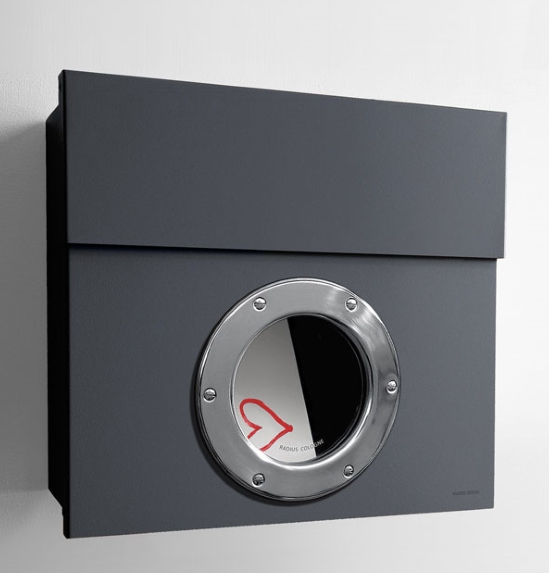 Der Klassiker Letterman I (40 x 34 x 11,5cm) von Radius designd by Michael Rösig.Das markante Bullauge macht das Modell zu einem echten Hingucker – und ist praktisch dazu. Verrät es doch auf einen Blick, ob der heiß ersehnte Loveletter schon angekommen ist. Inkl. Namensschild aus Edelstahl, Schloss mit zwei Schlüsseln und Sichtschutzklebefolie.