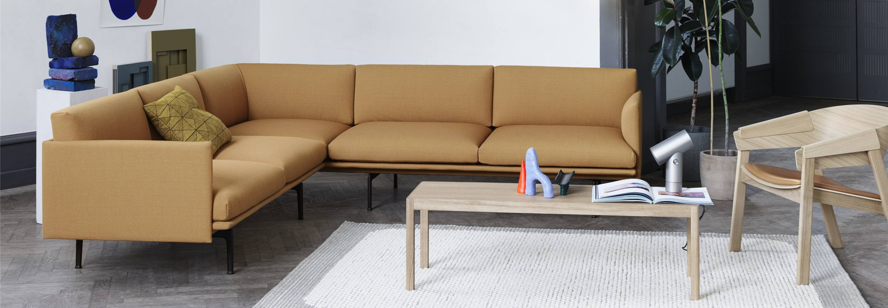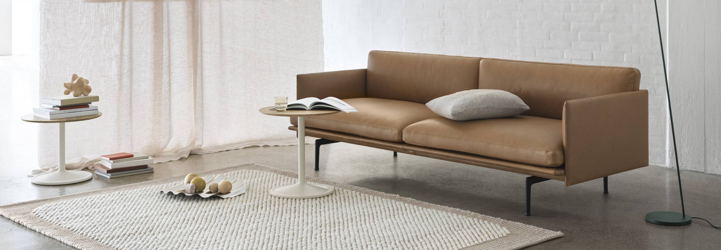 Die Outline-Sofa-Serie von Muuto bietet eine breite Palette an Möglichkeiten zur individuellen Gestaltung. Die Designer selbst empfehlen die Kombination von Leder mit lebhaften Farben, um einen zeitgemäßen und lebendigen Ausdruck zu erzielen.