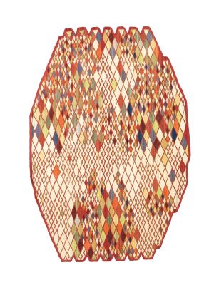 Um die Unregelmäßigkeit und den Farbreichtum der Wollreste zu bewahren, wurde eigens ein neues Herstellungsverfahren entwickelt. Das Ergebnis der Fertigung mit der handgewebten Dhurrie-Technik ist eine einzigartig schöne und pflegeleichte Kollektion mit einer flachen Struktur, die zu 50% aus Schurwolle und zu 50% aus der wiederverwendeten Wolle besteht.