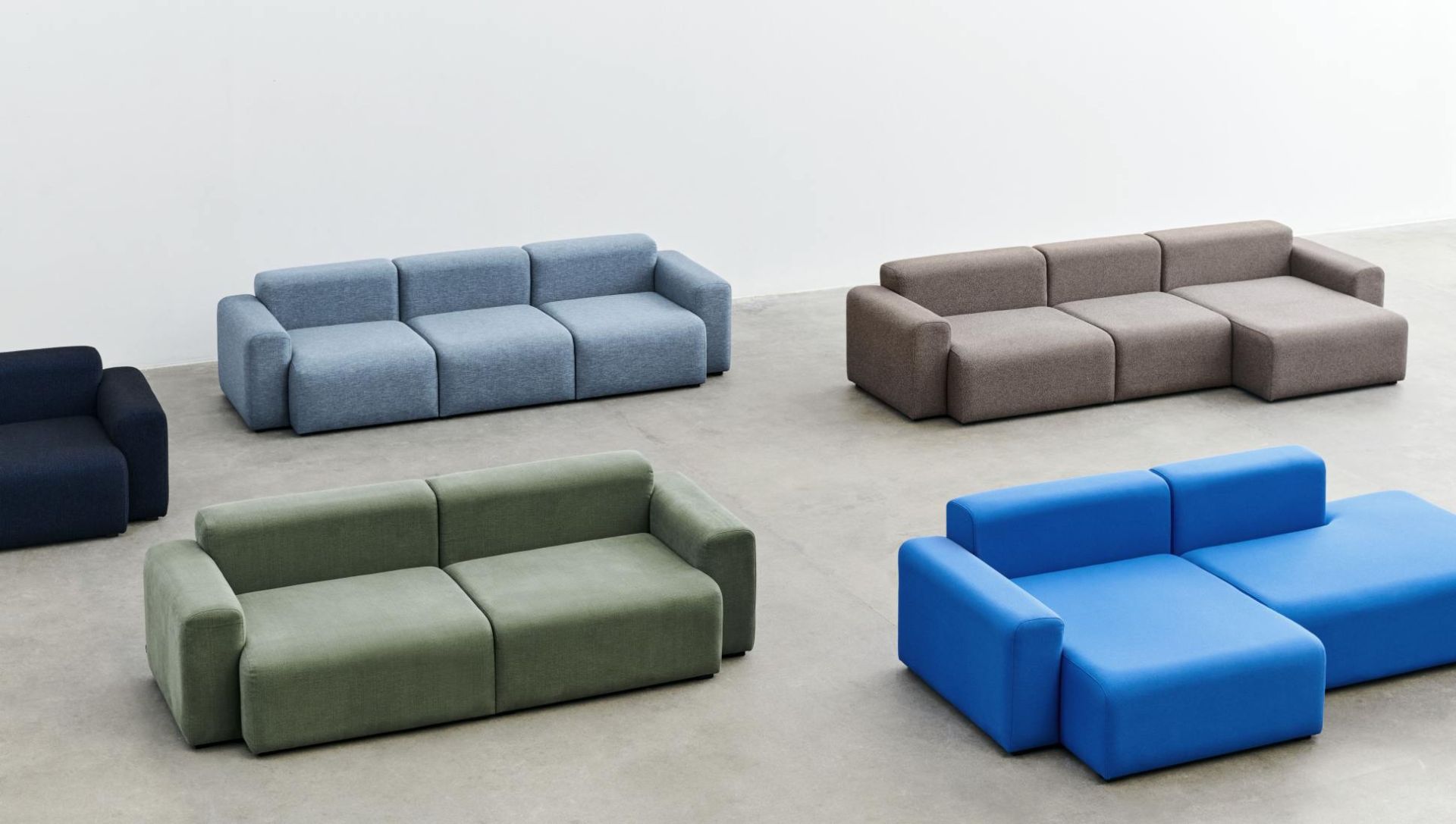 Entspannte Haltung: Mags Sofa 2,5 Sitzer Kombination 1 niedrige Armlehne von Hay