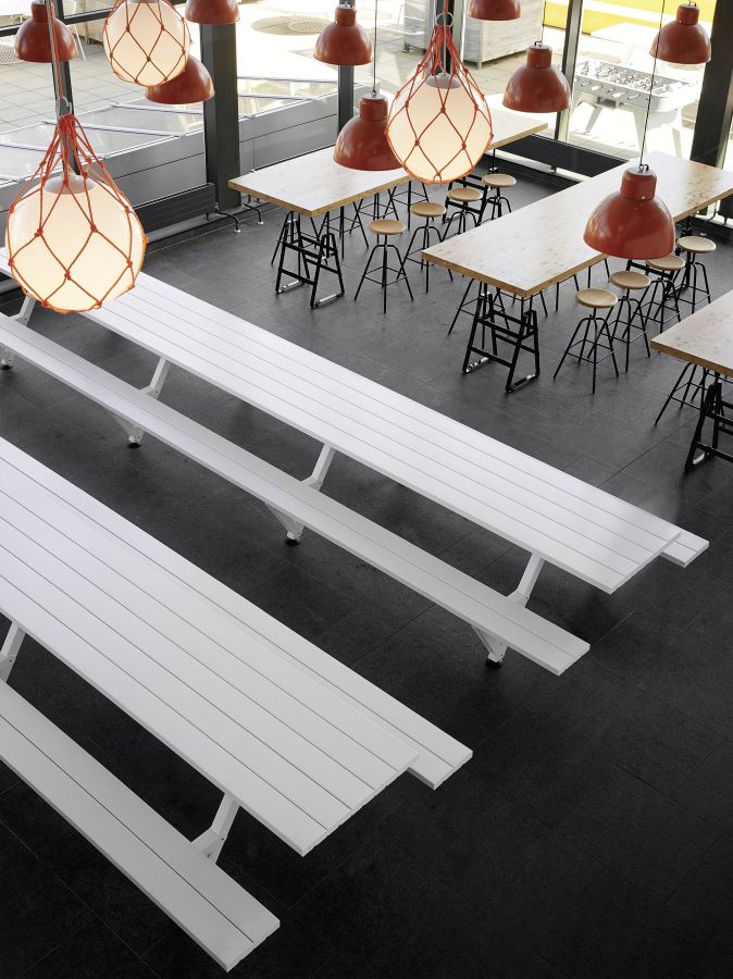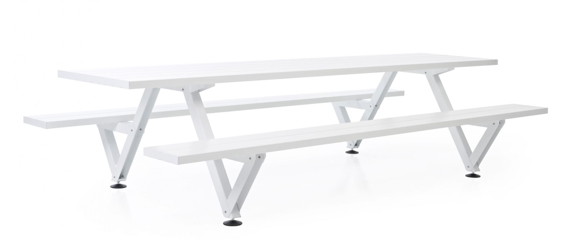 Die scheinbar endlose Tischplatte von Marina picnic aus der Kollektion Marina ist aus einem nahtlosen Stück gefertigt. Hier ist Platz für eine vierköpfige Familie oder Ihre ganze Gästeliste. Mit der Möglichkeit von zwei bis sechs Beinen pro Tisch können bis zu 40 Personen zusammen sitzen. Einer gelungenen Gartenparty steht nichts mehr im Wege!