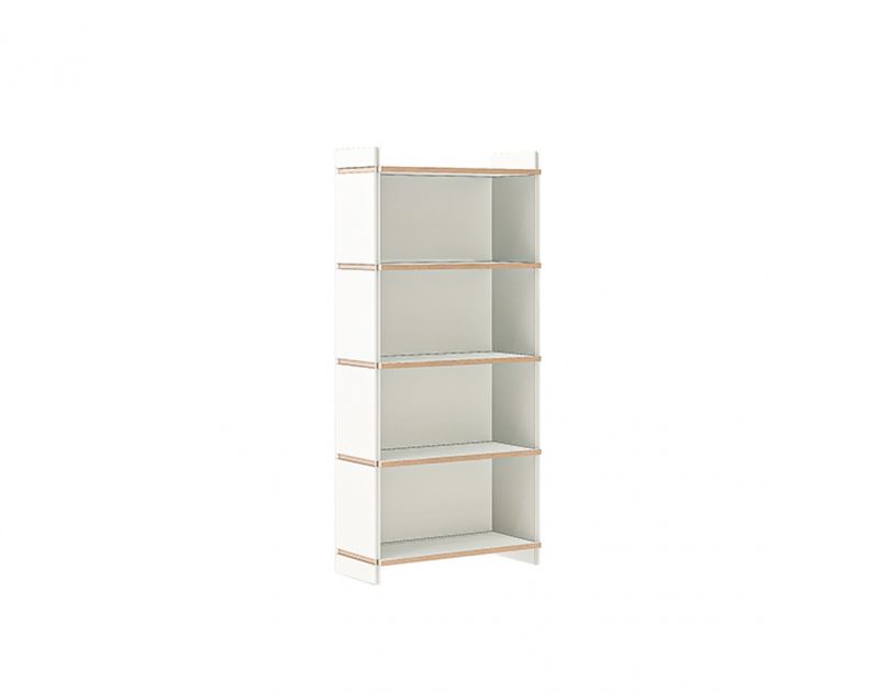 Die Module der Tojo-Mehrfach Serie bestehen aus Melaminharz beschichtetem, weißem MDF. Dieses Modul ist 69 cm breit, 36 cm tief und 225 cm hoch.