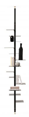 Schwarzes Adam Regal von Kartell aus Esche mit fünf Ablageflächen vor weißem Hintergrund.
