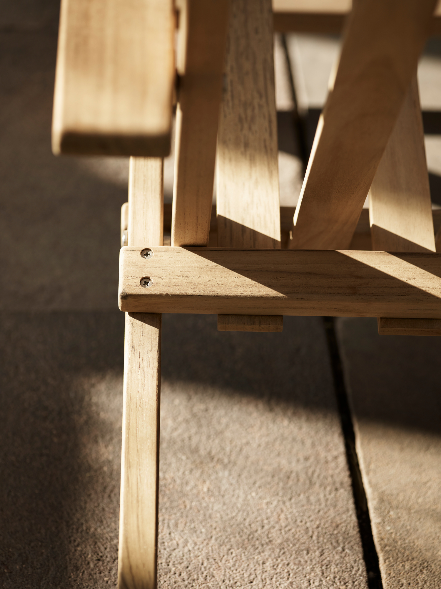 Das von Carl Hansen & Søn neu herausgegebene, zielgerichtete Design trägt dazu bei, Mensch und Natur auf nachdenkliche und inspirierende Weise zusammenzubringen. Die geradlinige Silhouette der Produkte aus massivem, unbehandeltem und FSC-zertifiziertem Teakholz zeichnet sich durch sorgfältig durchdachte Details aus, darunter sanft abgerundete Enden und im gleichen Abstand gesetzte Nieten.