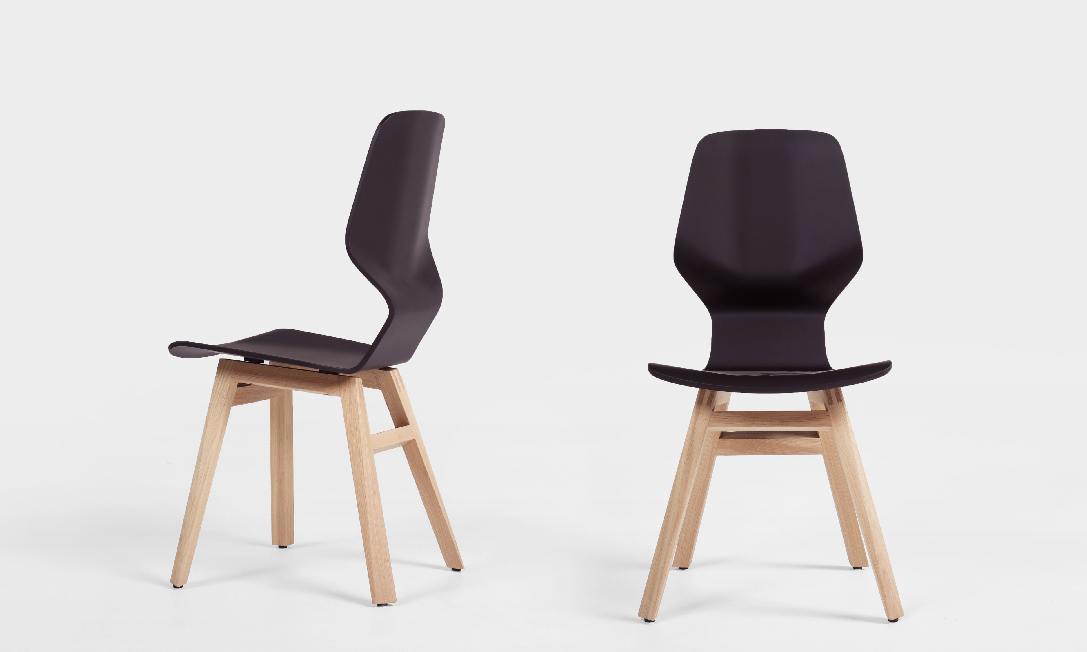 Der markante Holzstuhl der Oblikant Reihe eignet sich