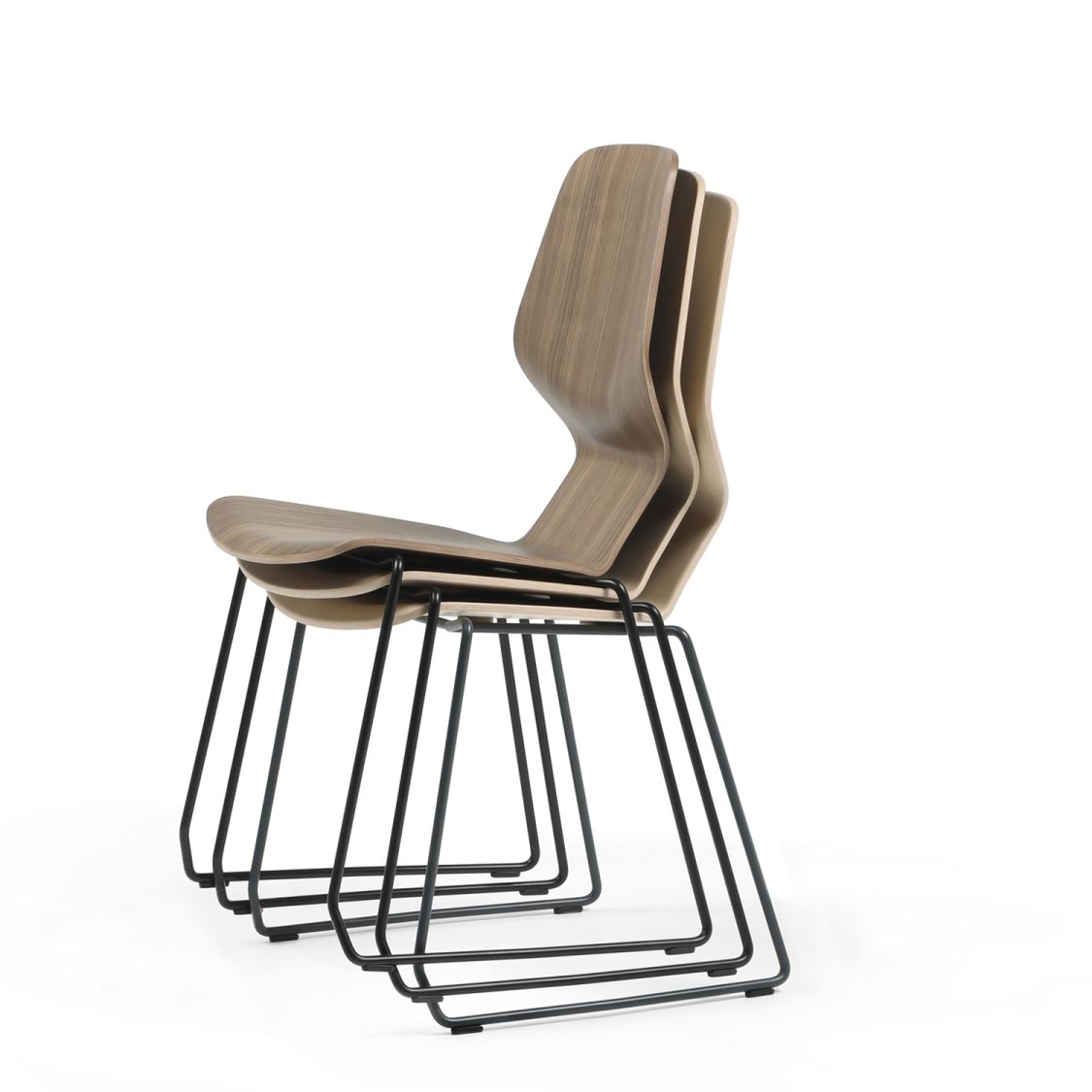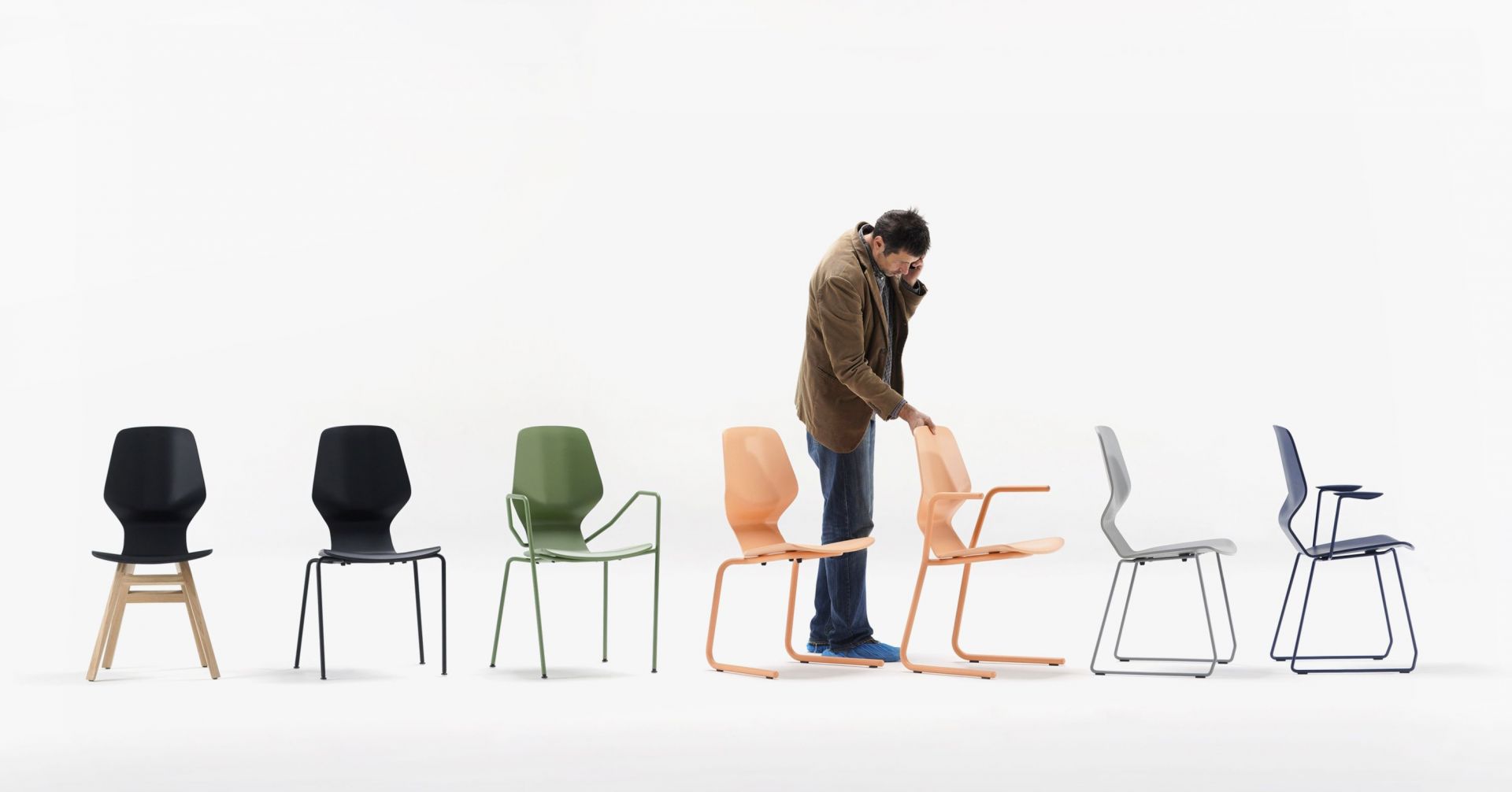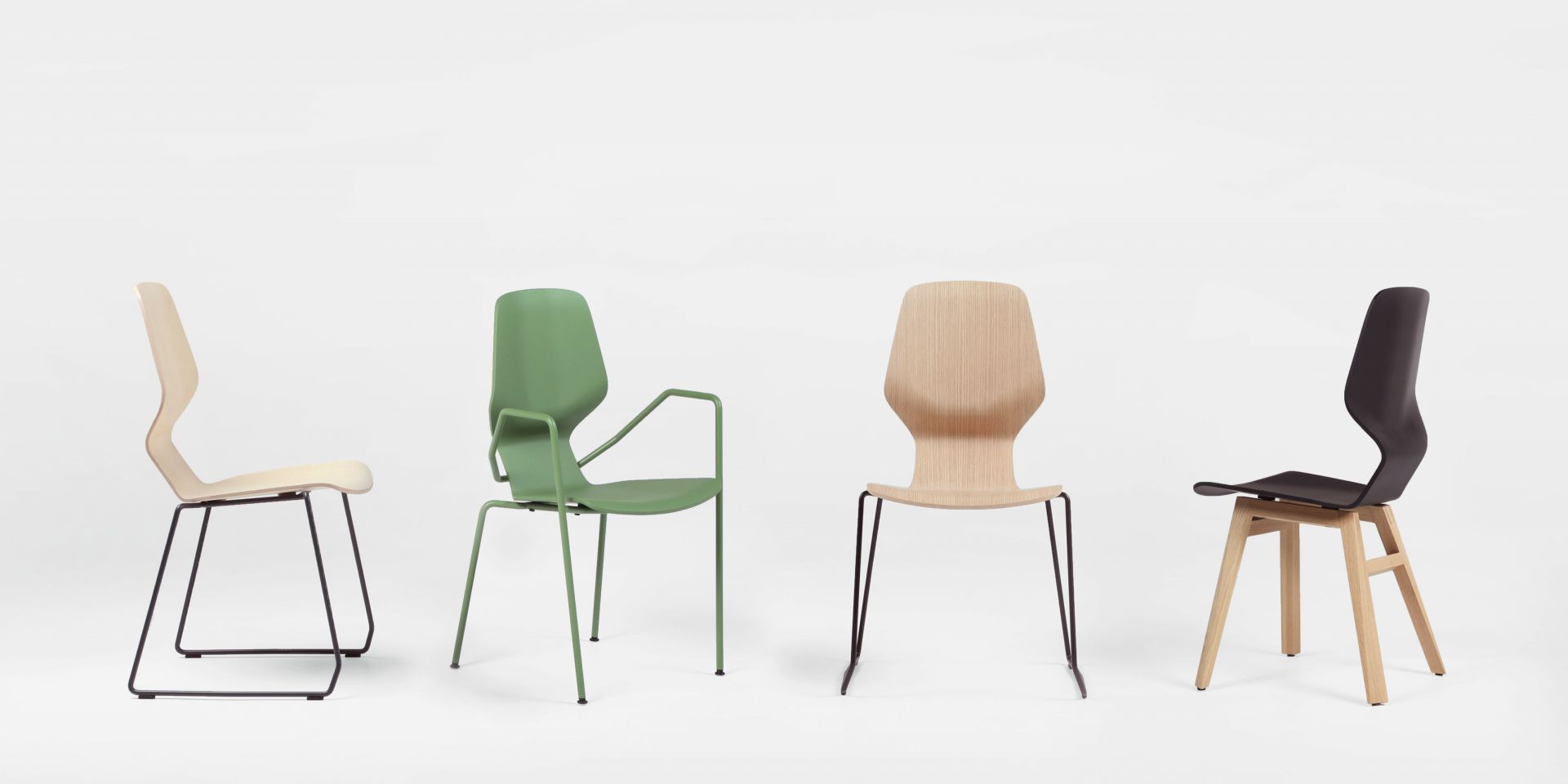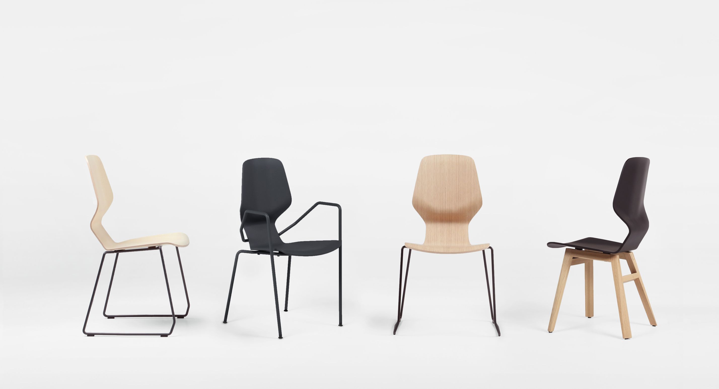Varianten des Oblikant Stuhls. Ob Holzstuhl, mit Vierfuß-Metallgestell oder als