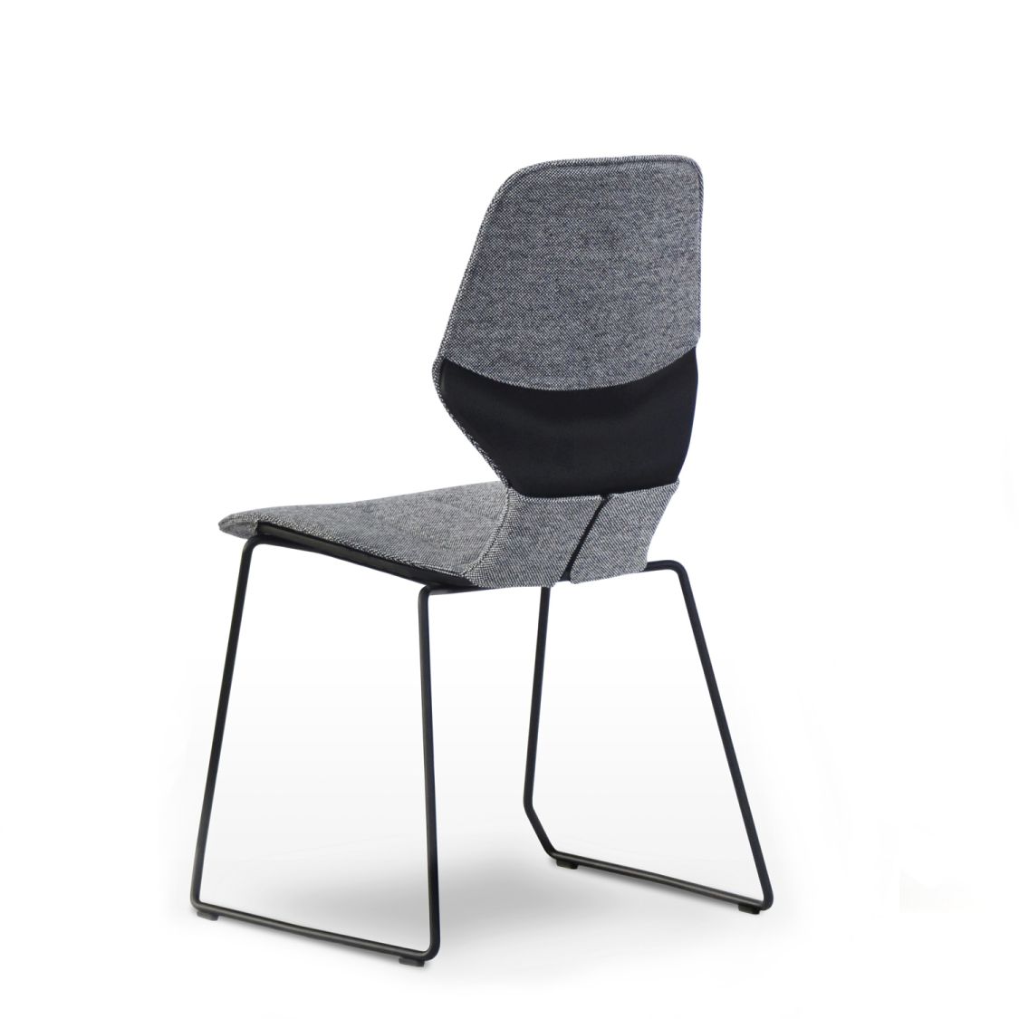 Der Designerstuhl besteht aus einem pulverlackierten Kufengestell