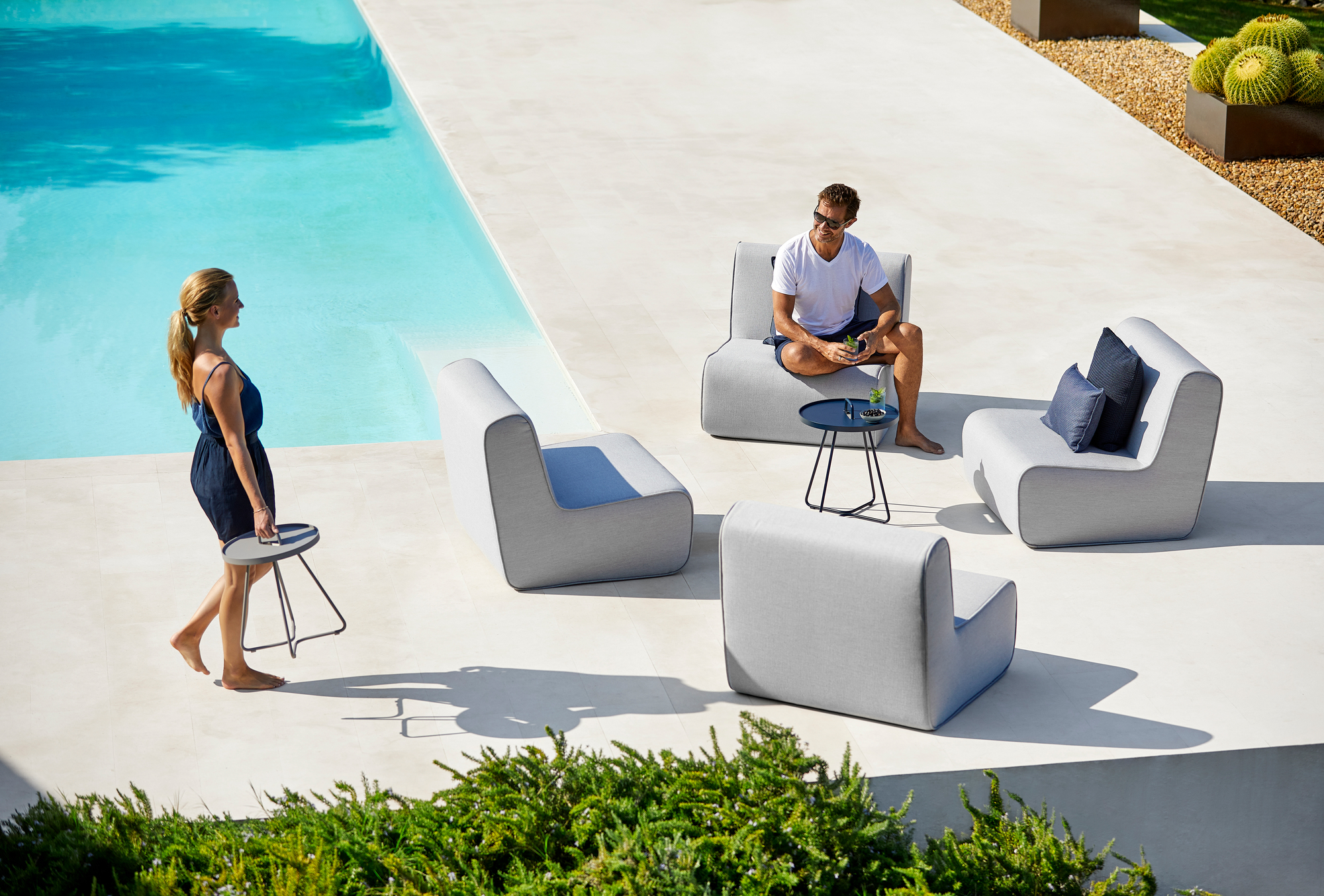 Für optimale Widerstandsfähigkeit lässt Cane-Line den aus Aluminium gefertigten Tisch mit wetterfester Pulverbeschichtung behandeln. Der Beistelltisch ist in lichtgrau, schwarz und weiß erhältlich. Er ist 42 cm hoch und hat einen Durchmesser von 37 cm.