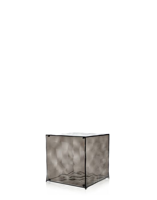 Optic, von Designer Patrick Jouin für Kartell entworfen, ist ein wirklich aufregendes Objekt: Die Oberfläche des Kubus ist mit Pyramiden mit quadratischer Grundfläche dekoriert, die leicht reliefartig gestaltet sind. So wird eine transparente oder eine spiegelnde, facettierte Oberfläche erzeugt, die dank eines wunderschönen Spiels mit Farben und reflektierten Bildern eine ganz besondere Atmosphäre schafft.