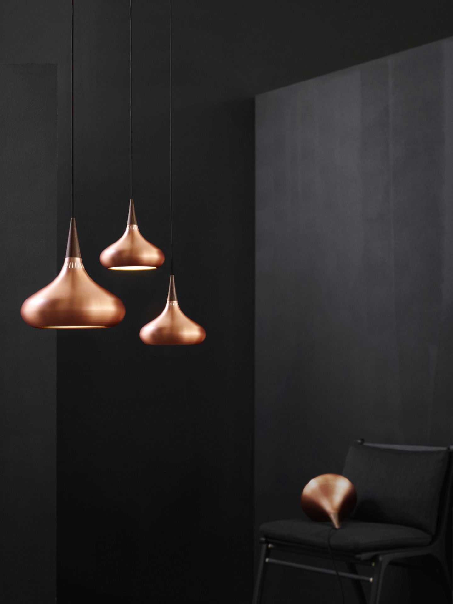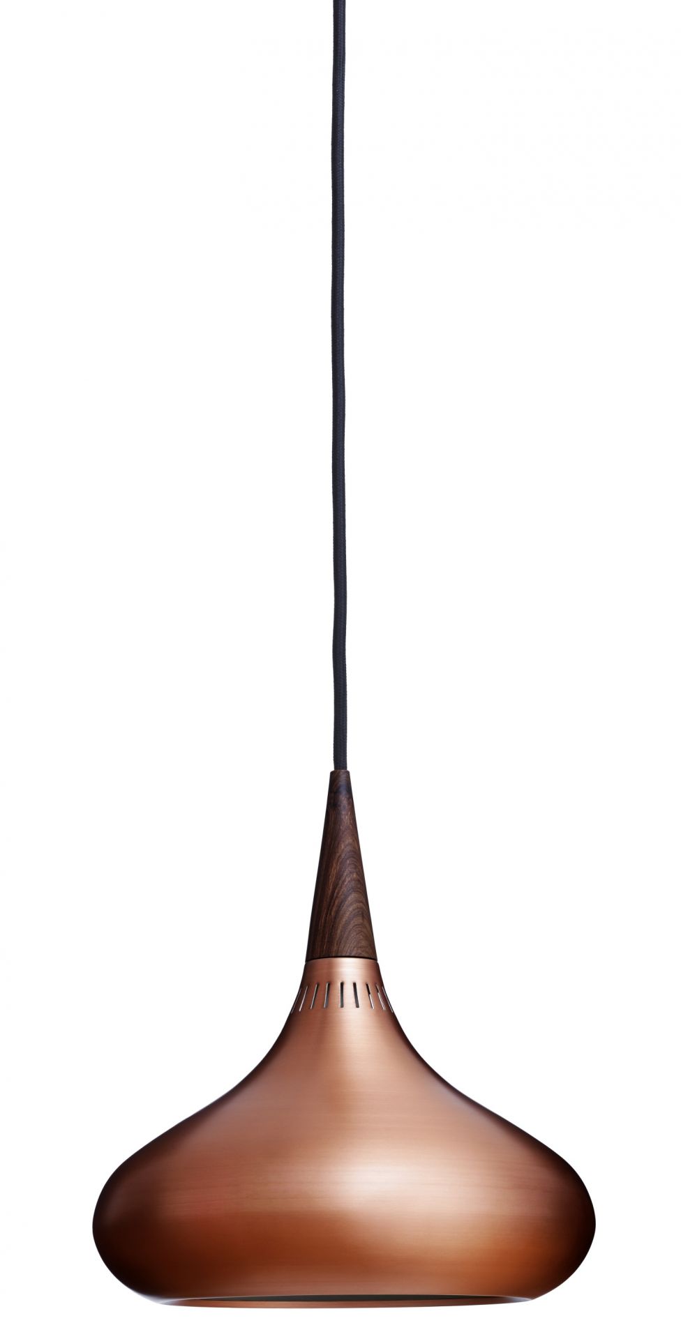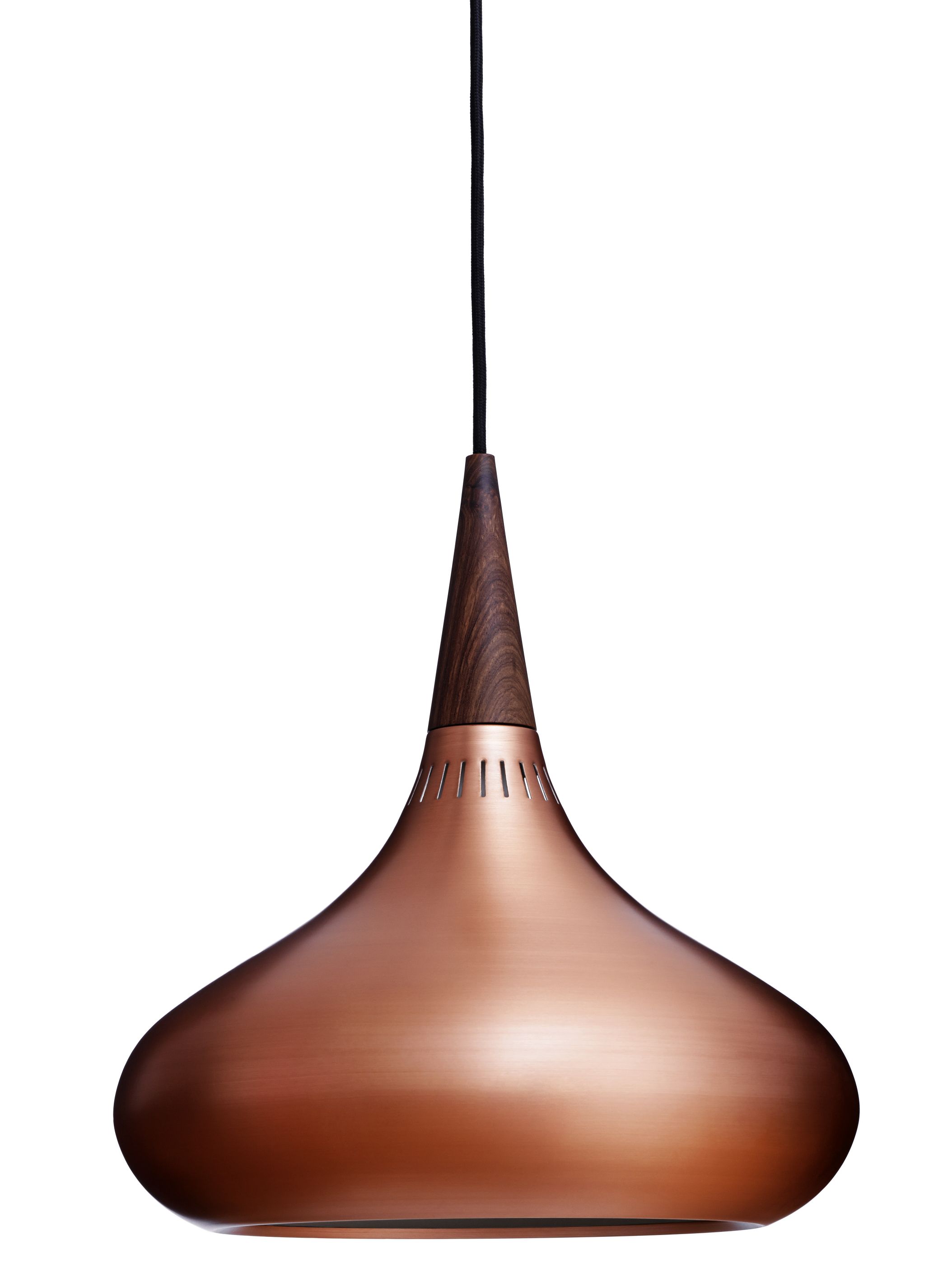 Einer Ein Klassiker neu in Szene gesetzt - Die Orient Pendelleuchte von Fritz Hansen wurde im Jahre 1963 von Jo Hammerborg erstmals entworfen und jetzt von Fritz Hansen in Zusammenarbeit mit der Familie des bekannten Designers Hammerborg neu wiederbelebt. Die aus Rosenholz gefertigte Spitze stellt einen wunderschönen Kontrast zu dem formschönen Kupferkörper dar.