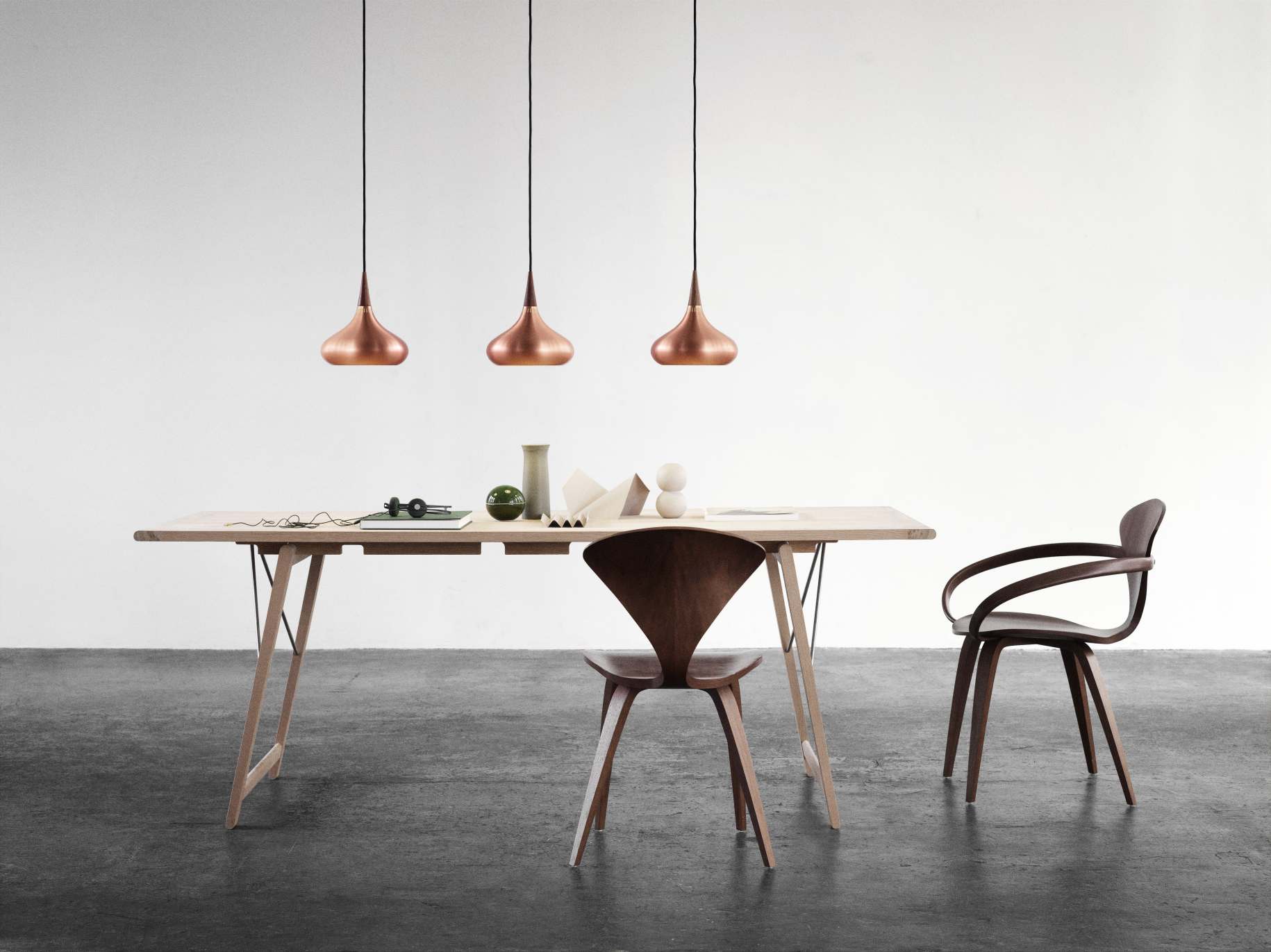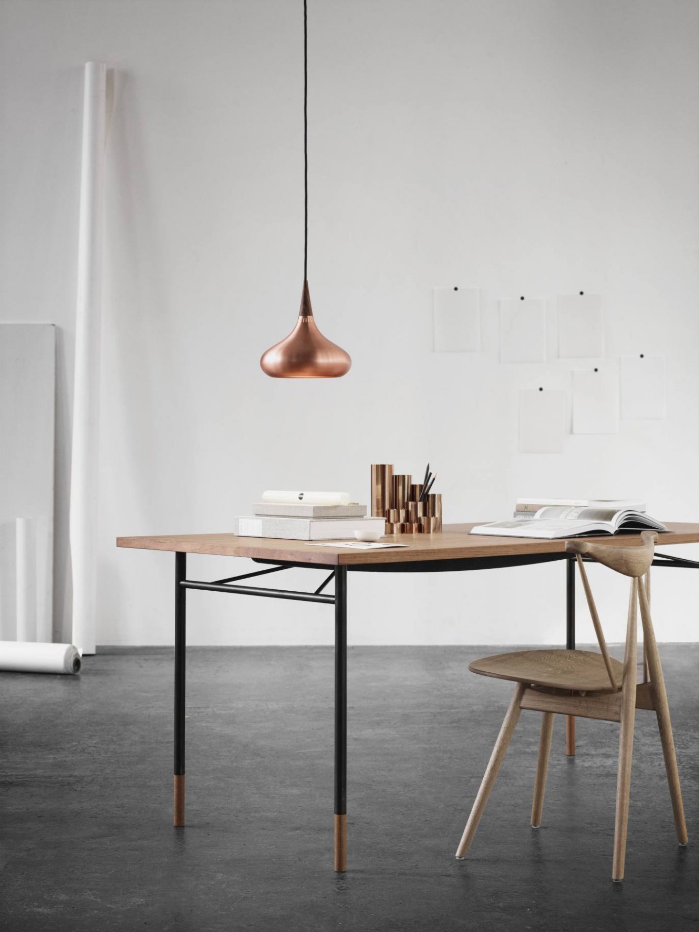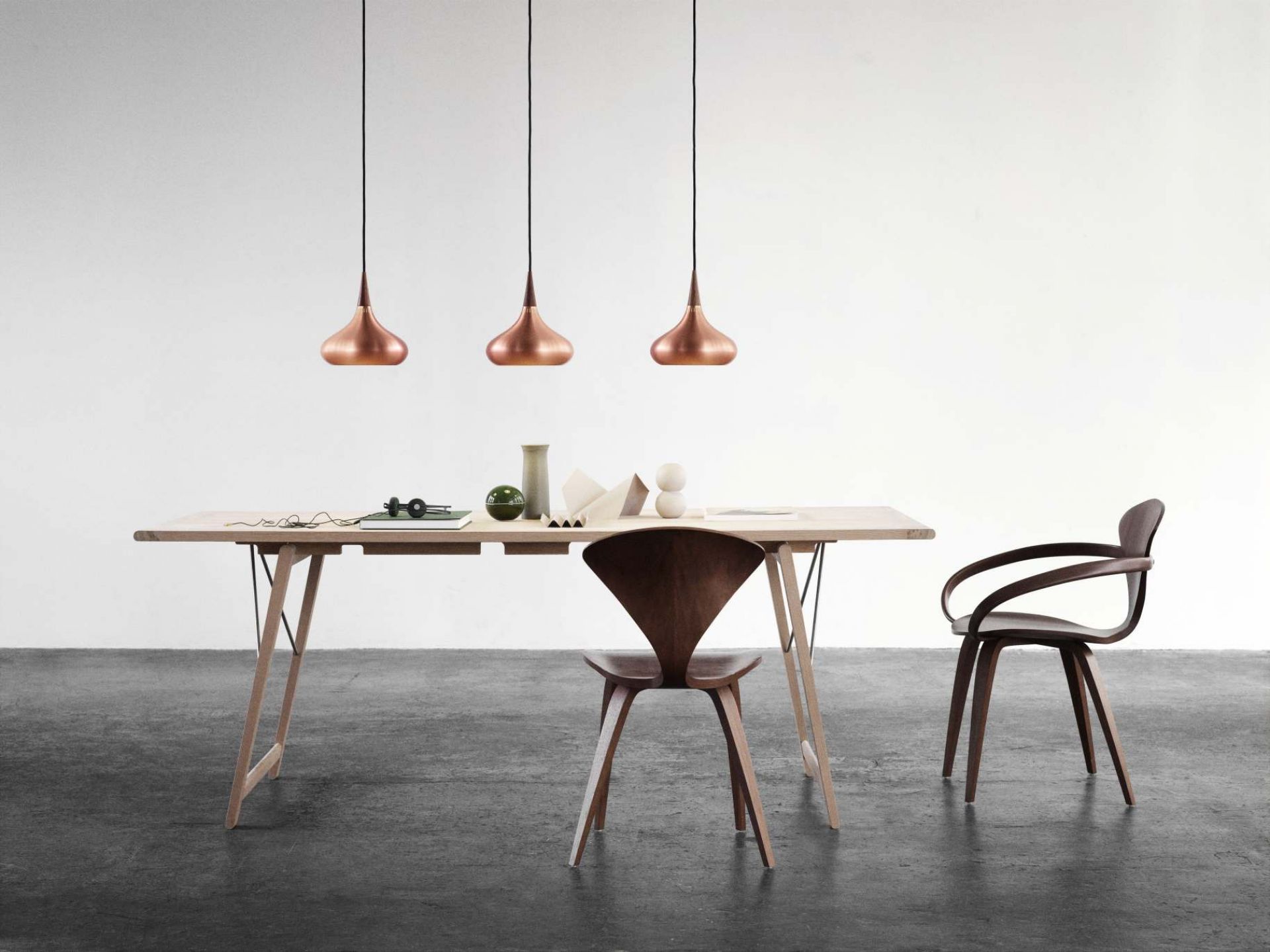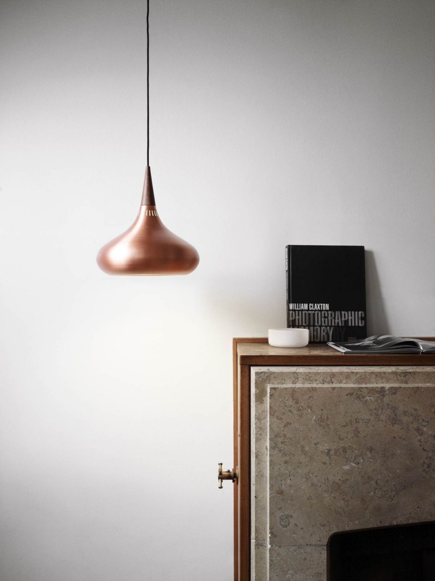 Einer Ein Klassiker neu in Szene gesetzt - Die Orient Pendelleuchte von Fritz Hansen wurde im Jahre 1963 von Jo Hammerborg erstmals entworfen und jetzt von Fritz Hansen in Zusammenarbeit mit der Familie des bekannten Designers Hammerborg neu wiederbelebt. Die aus Rosenholz gefertigte Spitze stellt einen wunderschönen Kontrast zu dem formschönen Kupferkörper dar.