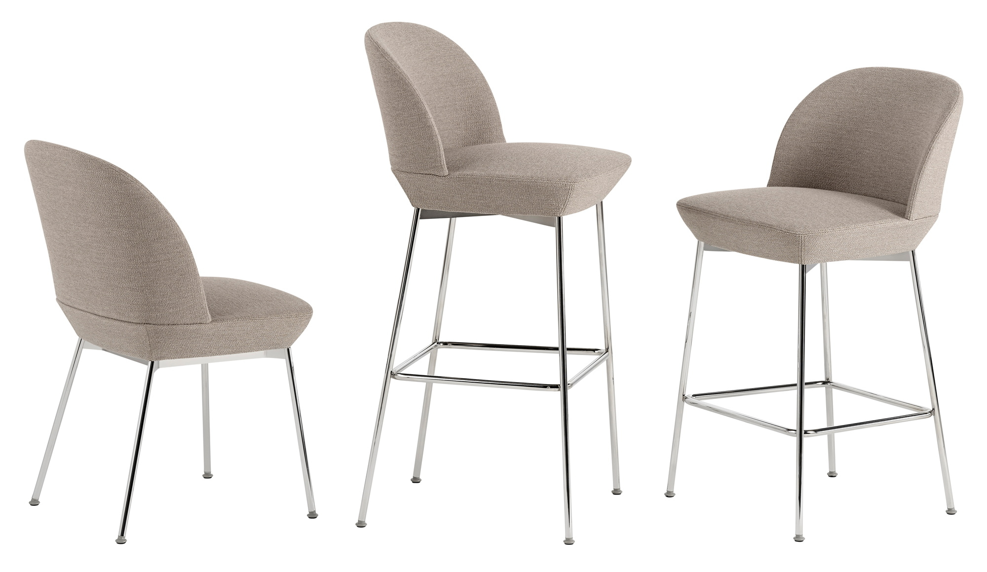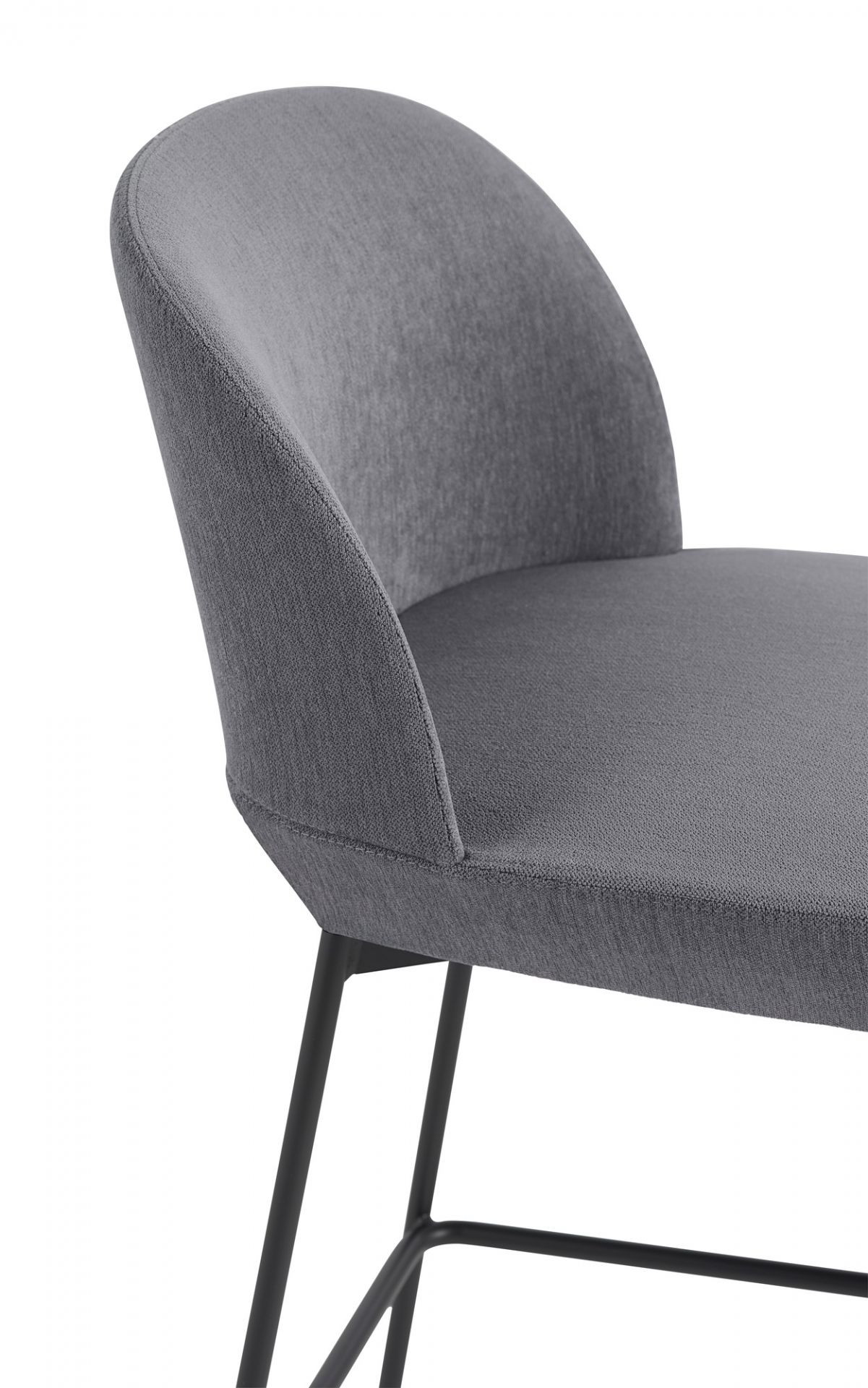 Der Barhocker besteht aus einem Stahlrahmen, einer Polsterung aus Formschaum und einem Bezug, den Sie wählen können. Der Barhocker ist 51 cm breit, 55 cm tief und 103,5 cm hoch. Die Sitzhöhe liegt bei 75 cm.
