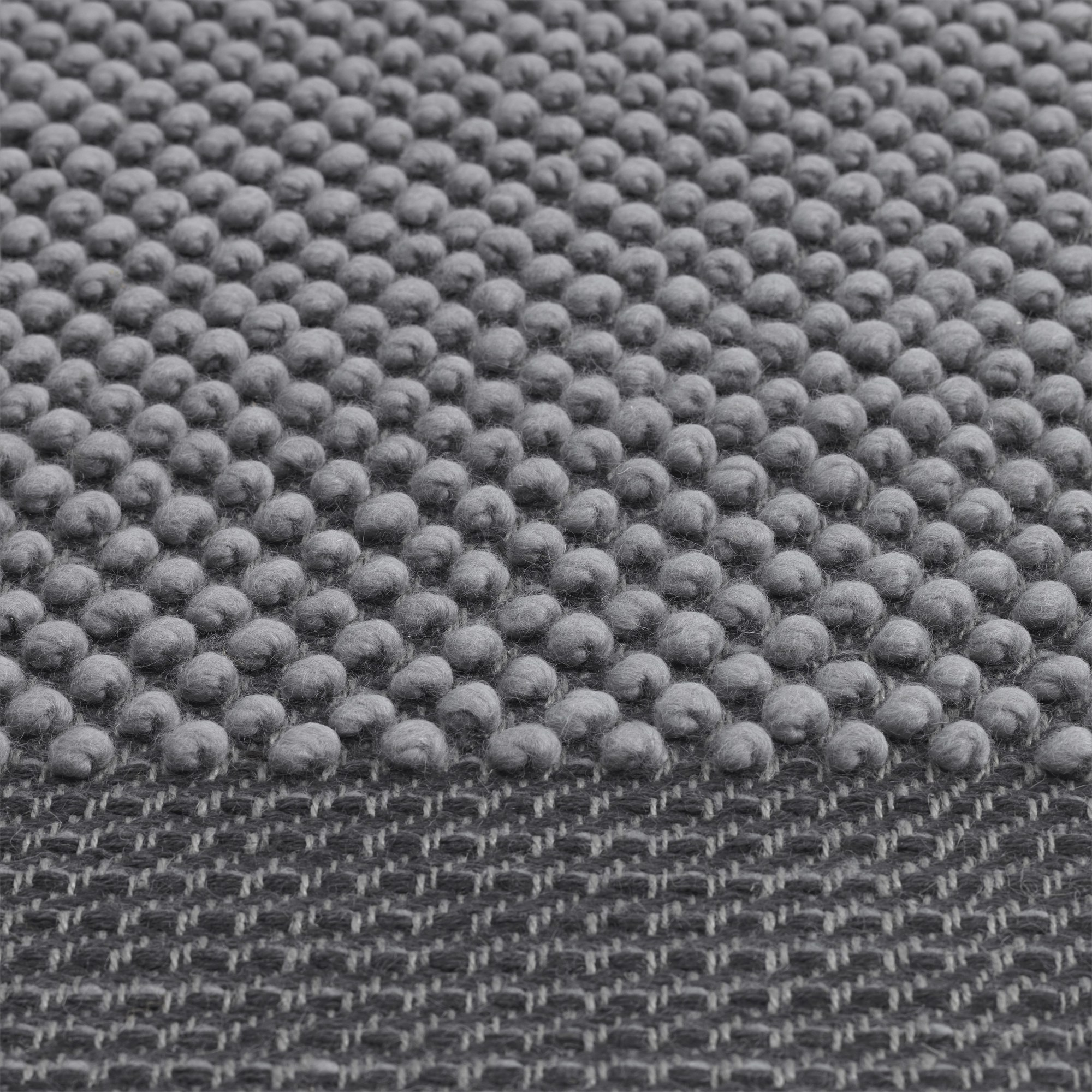 Inspiriert ist der Pebble Rug Teppich von Muuto durch das Sinne anregende Gefühl über einen Kiesstrand zu laufen. Die handgewebte Struktur unterstützt dabei das kontrastierende Gefühl zwischen weichen Wollschlaufen und stabiler Basis aus kühlem Jutegarn. Seine moderne und ausgeprägte Webstruktur macht den Pebble Rug zu einem angenehmen Einrichtungsgegenstand für jeden Wohn- und Arbeitsbereich.