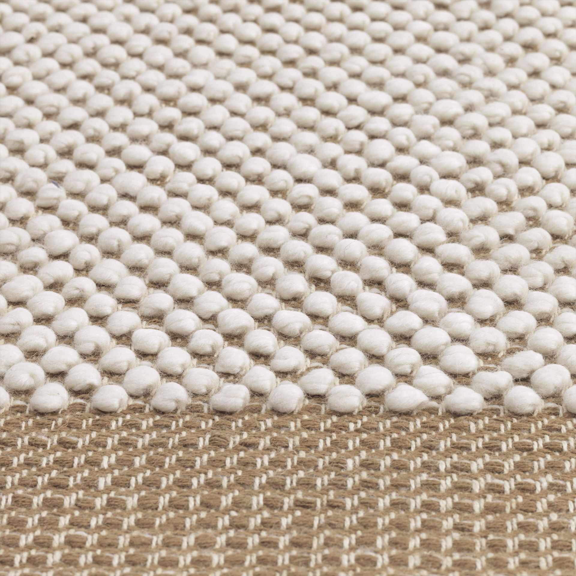 Der Teppich besteht zu 60% neuseeländische Lammwolle und zu 40% aus Jute. Die Wolle wird gefärbt und von Hand gewebt. Der Teppich wird mit einem mit synthetischem Latex geklebten Canvas-Rücken geliefert, der dafür sorgt, dass der Teppich reibungslos auf dem Boden liegt. Er ist in verschiedenen Maßen und Farben erhältlich.